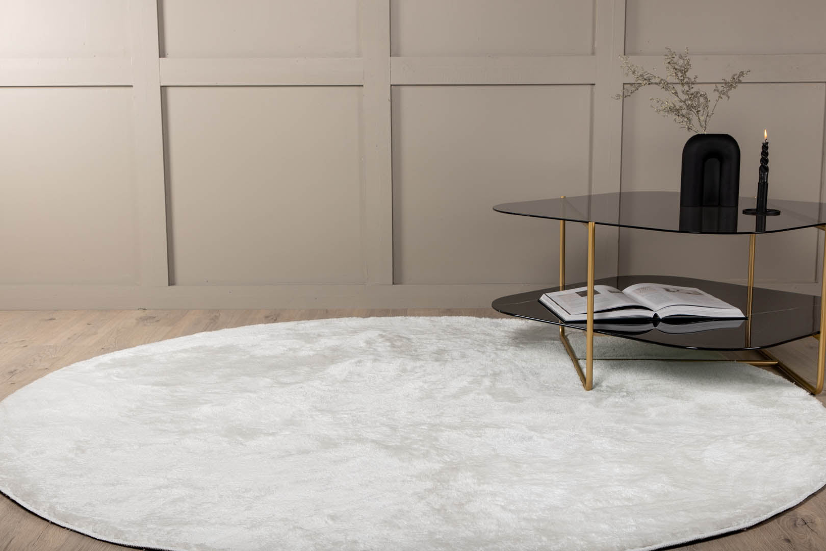 Hioshop Blanca vloerkleed Ø200 cm polyester wit.