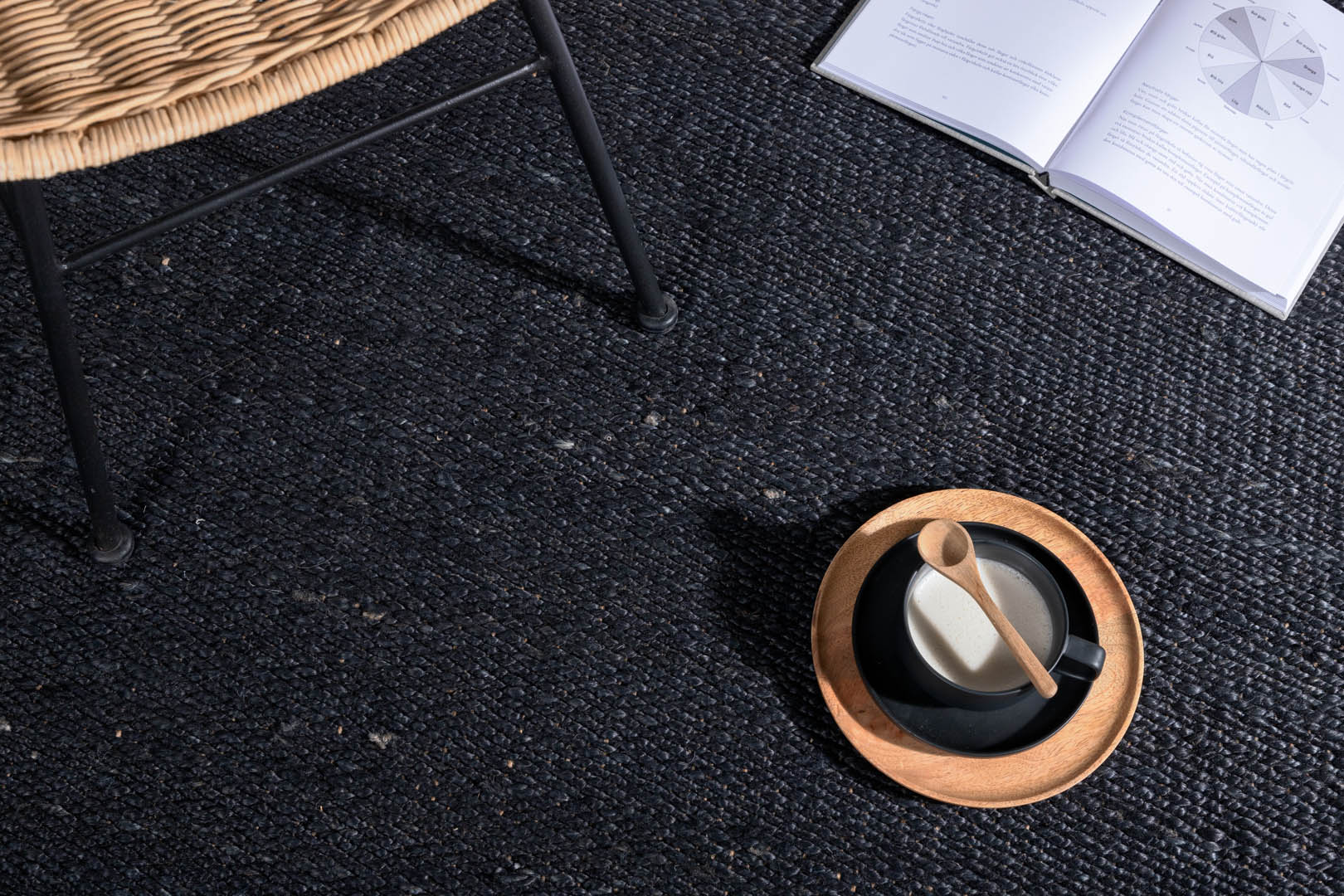 Hioshop Kali vloerkleed 300x200 cm jute zwart.