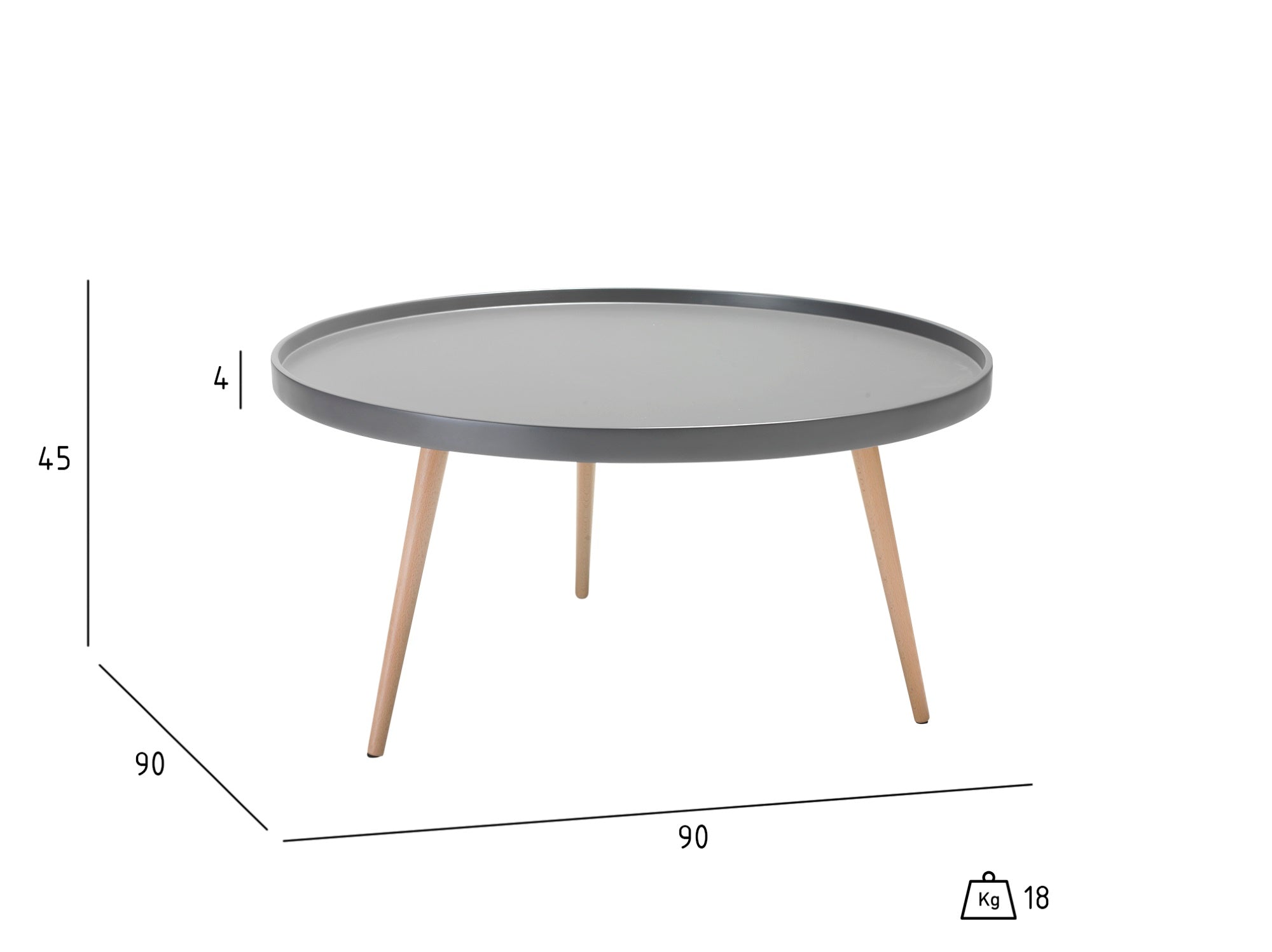 Hioshop Osaka ronde salontafel grijs 90 cm.