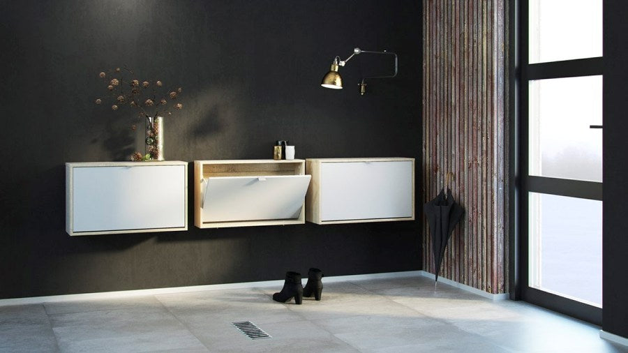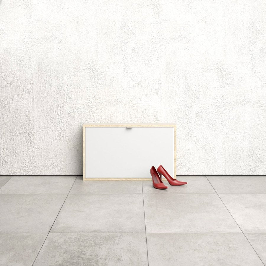 - 1 x Shane schoenenkast 1 klapdeur 1R eikenstructuur decor, wit.