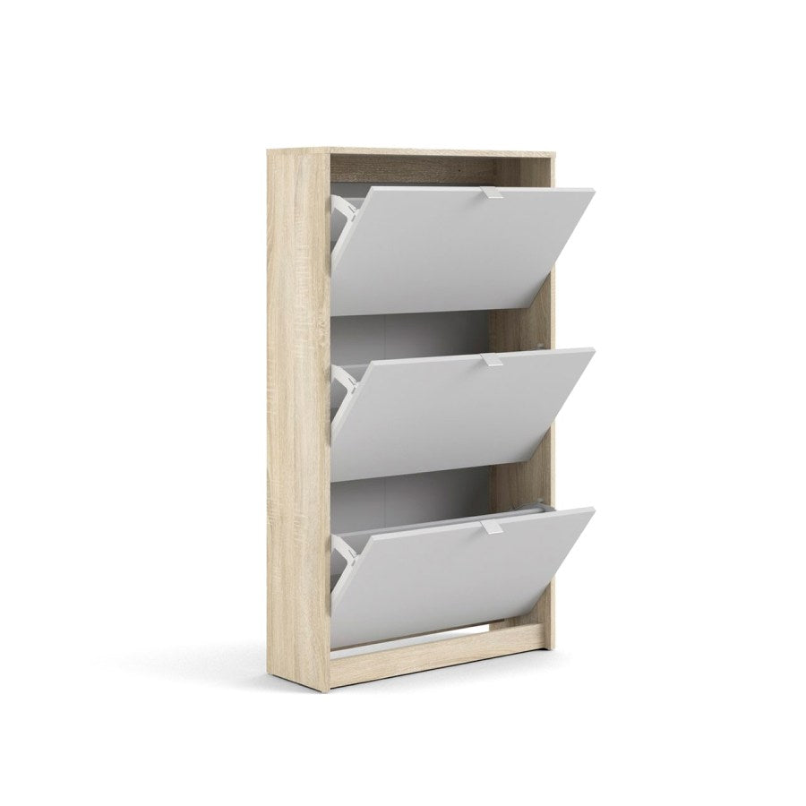 Hioshop Shane schoenenkast 3 klapdeuren 2R eikenstructuur decor,