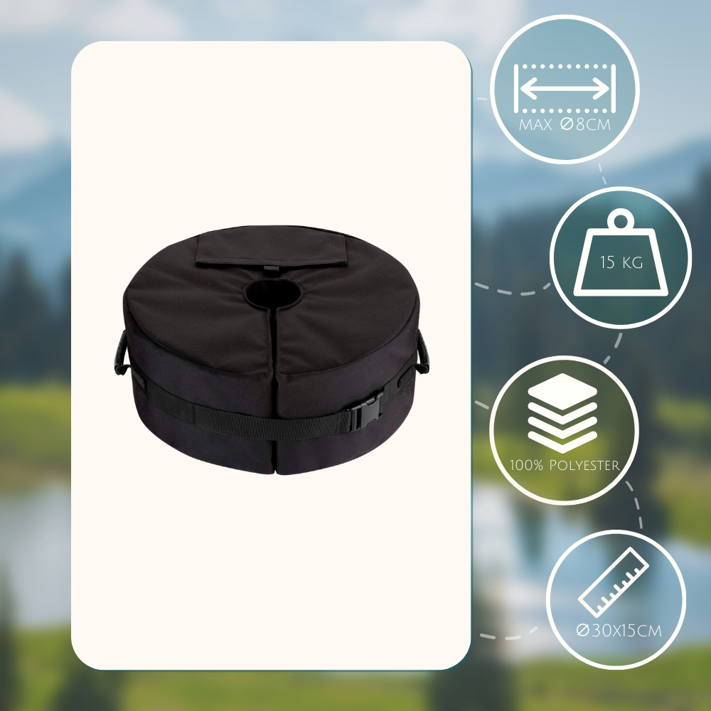 Op zoek naar een stevige en praktische parasolvoet om jouw parasol stabiel en veilig te houden? Dan is de HIXA opvulbare parasolvoet de perfecte keuze voor jou! Deze ronde parasolvoet is uitgevoerd in stijlvol zwart en is gemaakt van polyester.