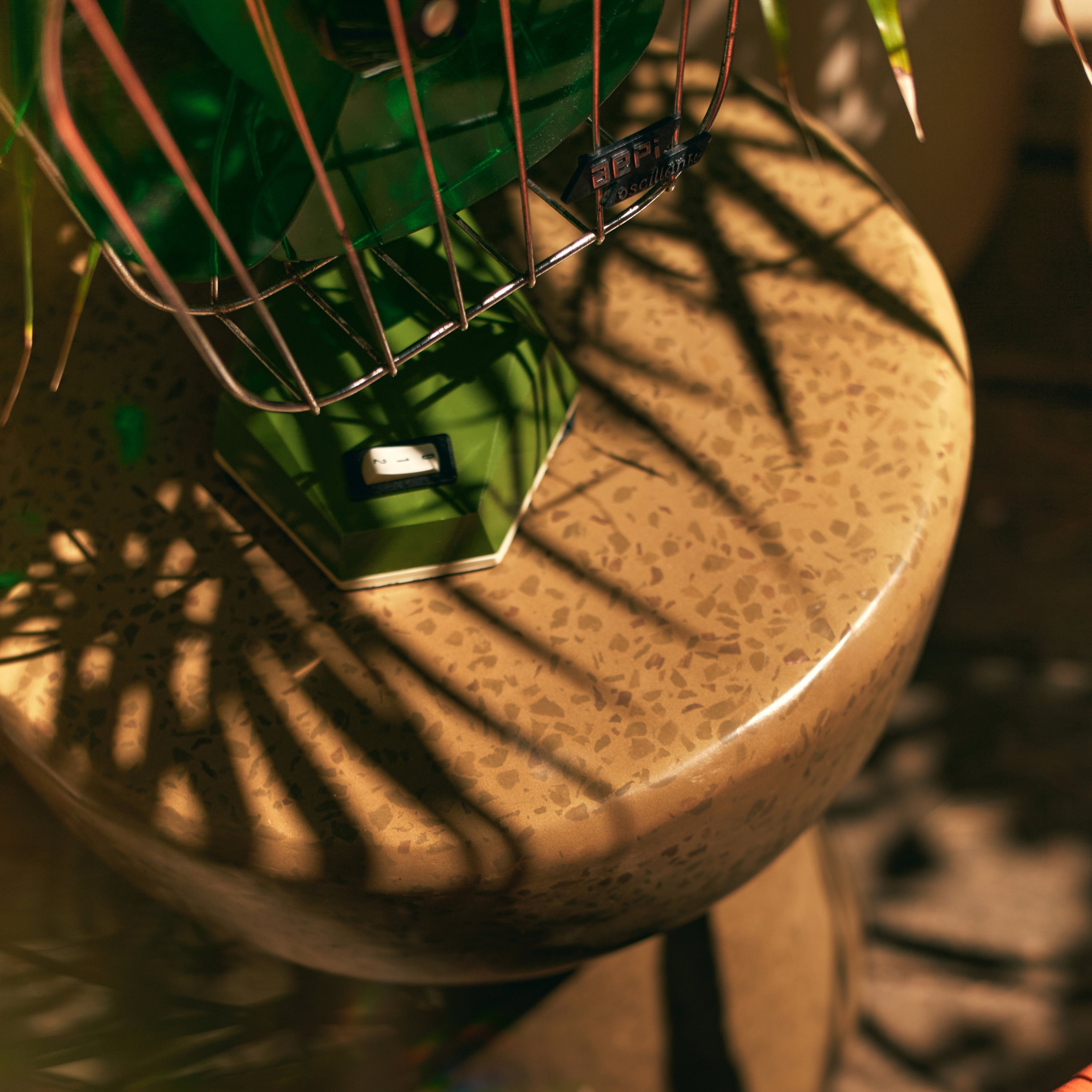 - Het terrazzo patroon geeft deze bijzettafel een warme retro uitstraling