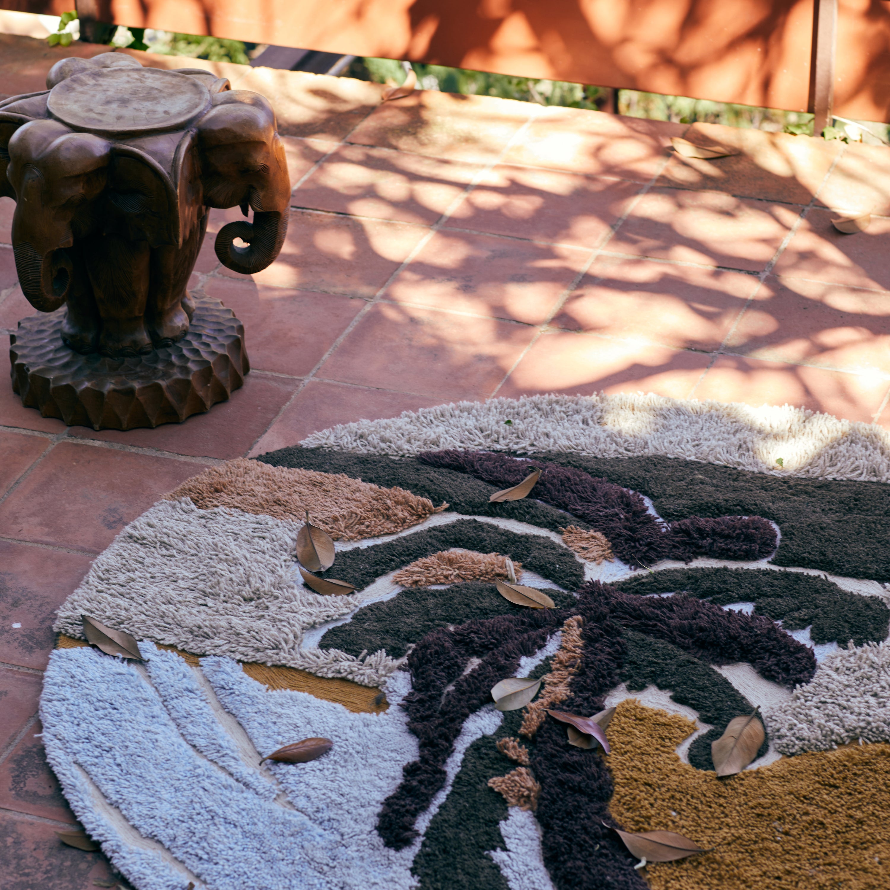 - Een kleurrijk vloerkleed van Ø 150 cm