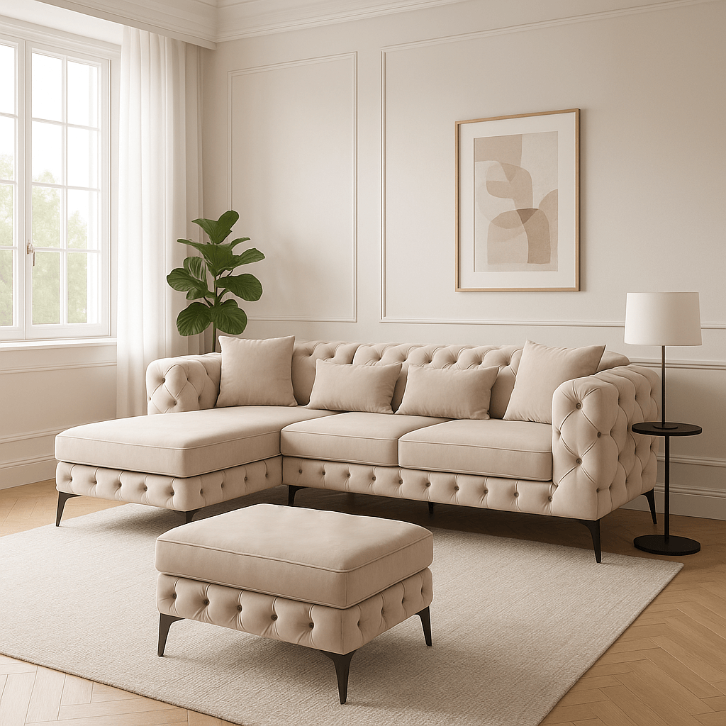 - Hoekbank Bellissima Velvet Taupe Left is een elegant en tijdloos meubelstuk dat perfect is voor een iconisch interieur.