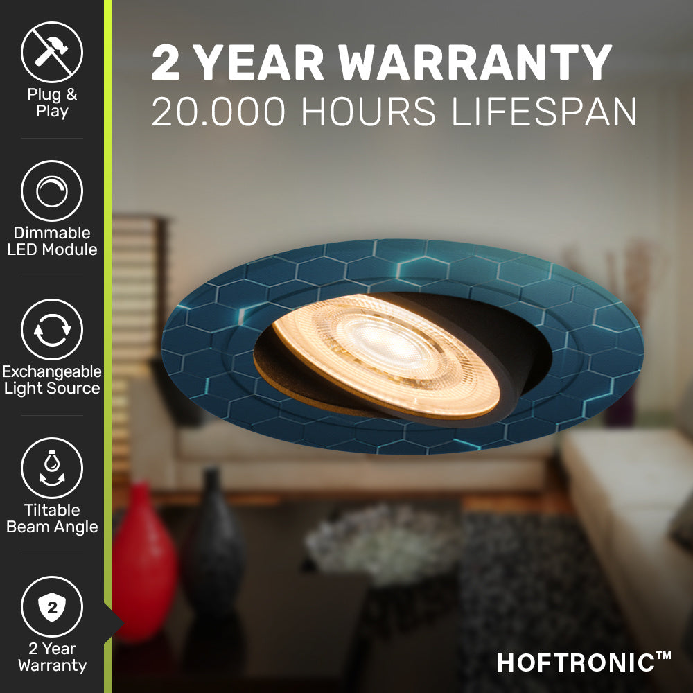 - HOFTRONIC Inbouwspots: Deze inbouwspots zijn van het merk HOFTRONIC. Je ontvangt 2 jaar garantie op deze spots.