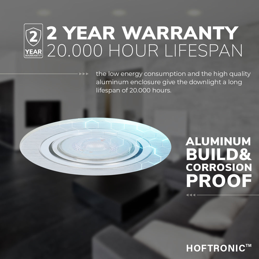 - HOFTRONIC Inbouwspots: Deze inbouwspots zijn van het merk HOFTRONIC. Je ontvangt 2 jaar garantie op deze spots.