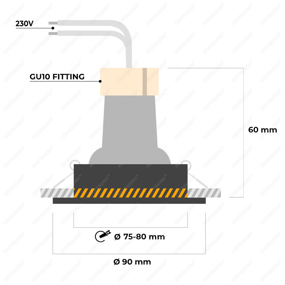 - Specificaties: Inbouwdiepte: 60 mm Zaagmaat: Ø 75-80 mm Diameter: Ø 90 mm