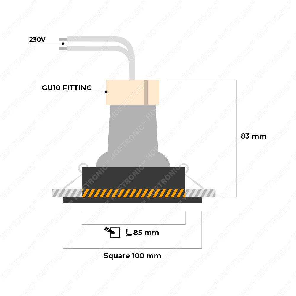 - Specificaties: Inbouwdiepte: 83 mm Zaagmaat: Vierkant 85x85 mm Diameter: Vierkant 100x100 mm