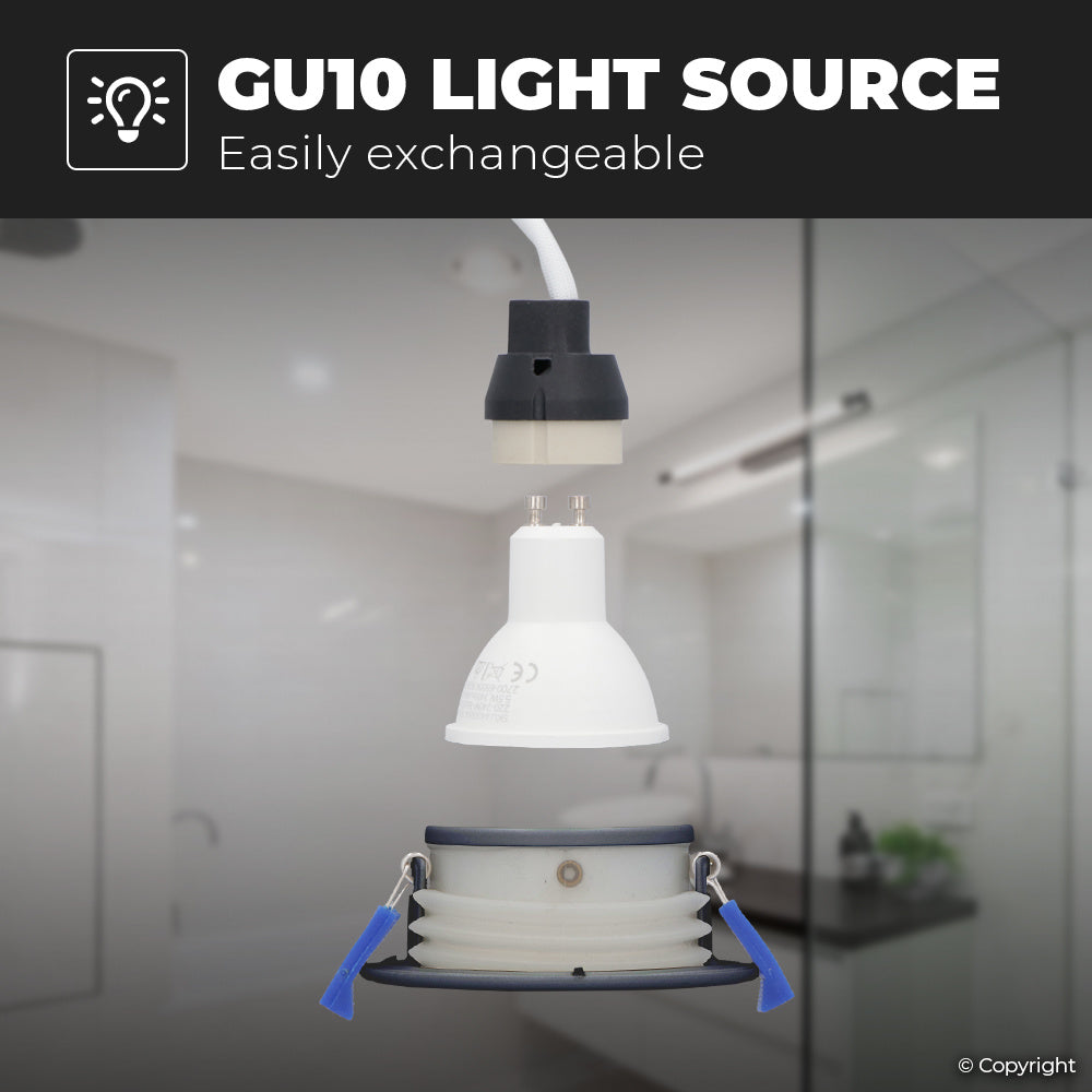 - Extra lage inbouwdiepte: Deze inbouwspots hebben een inbouwdiepte van slechts 95 mm. Hierdoor passen ze in ieder plafond.