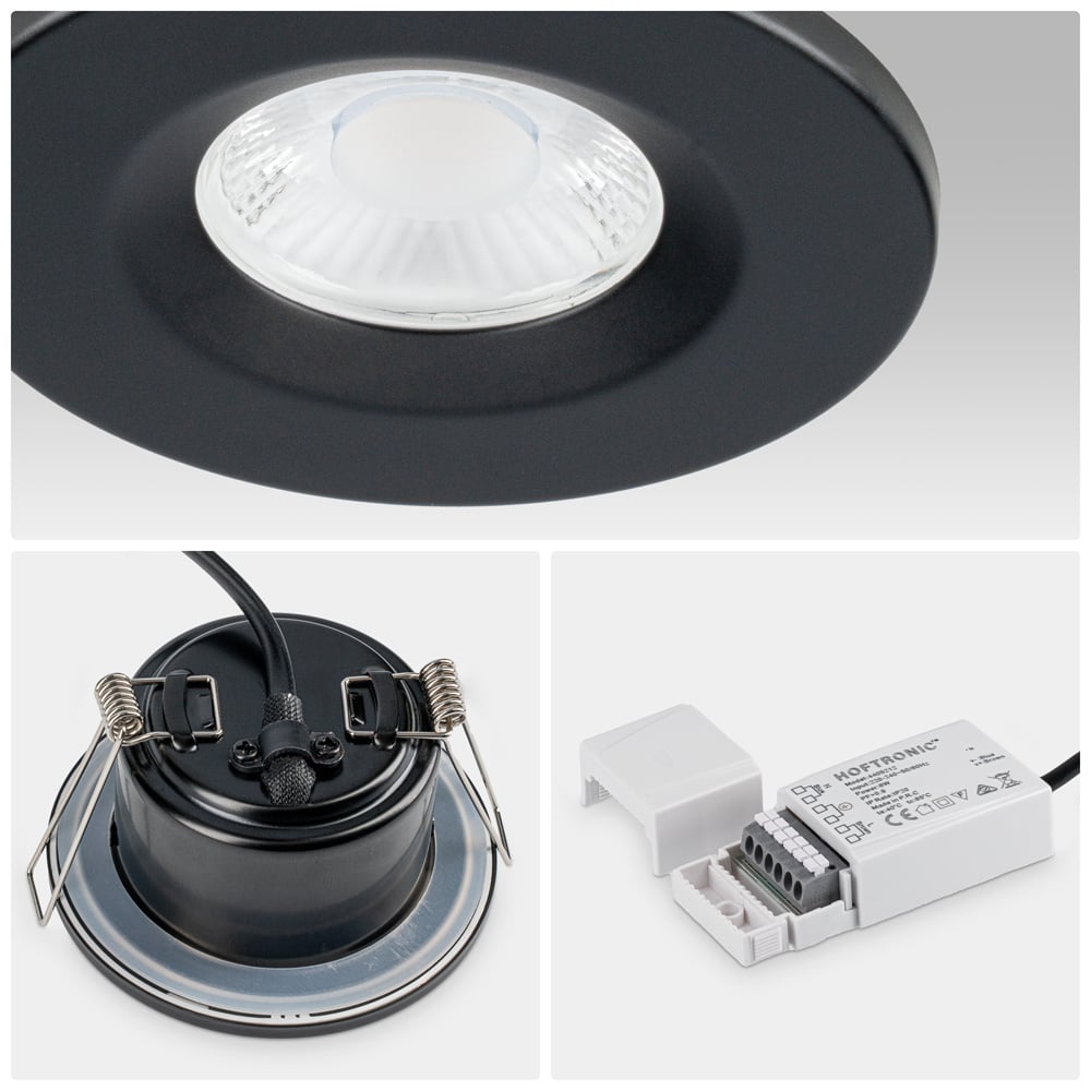 Deze zwarte dimbare LED inbouwspot verbruikt slechts 6 Watt (vervangt 50 Watt halogeen) en is IP65 waterdicht. De LED spot geeft een mooi warm wit licht af van 2700K ideaal voor in de badkamer of tuin.