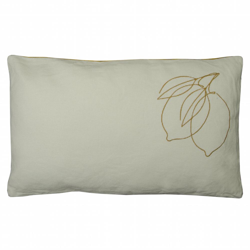 Onze favoriet, dit vrolijke citroen kussen. De citroenen zijn fijn geborduurd met mooi mosterd kleurig draad. De achterkant is effen mosterd. Mix met onze verschillende andere kussens voor een warm interieur.