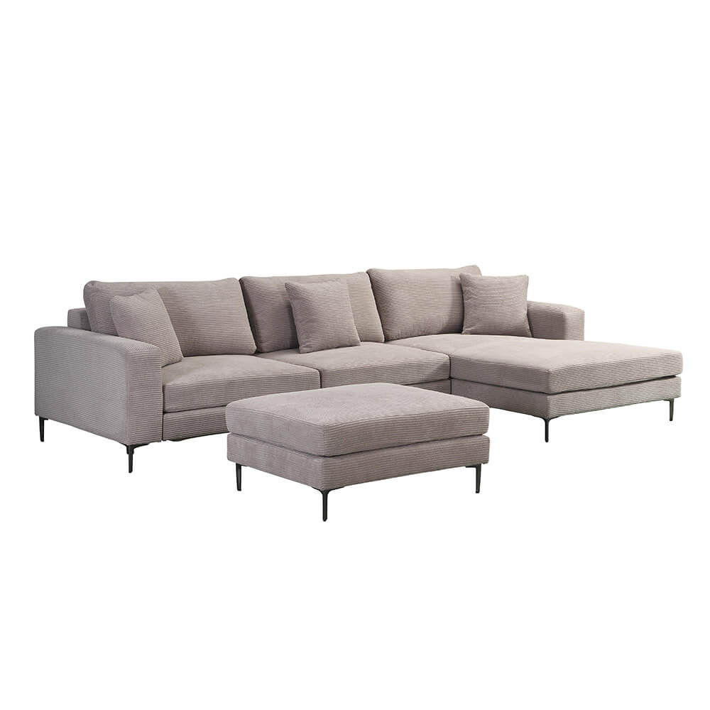 HOME DELUXE 3-zitbank - Chaise Longue Rechts - Ribfluweel - Beige