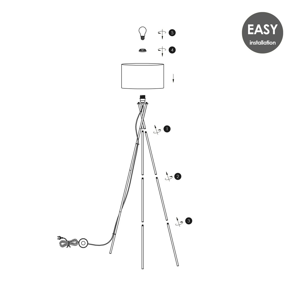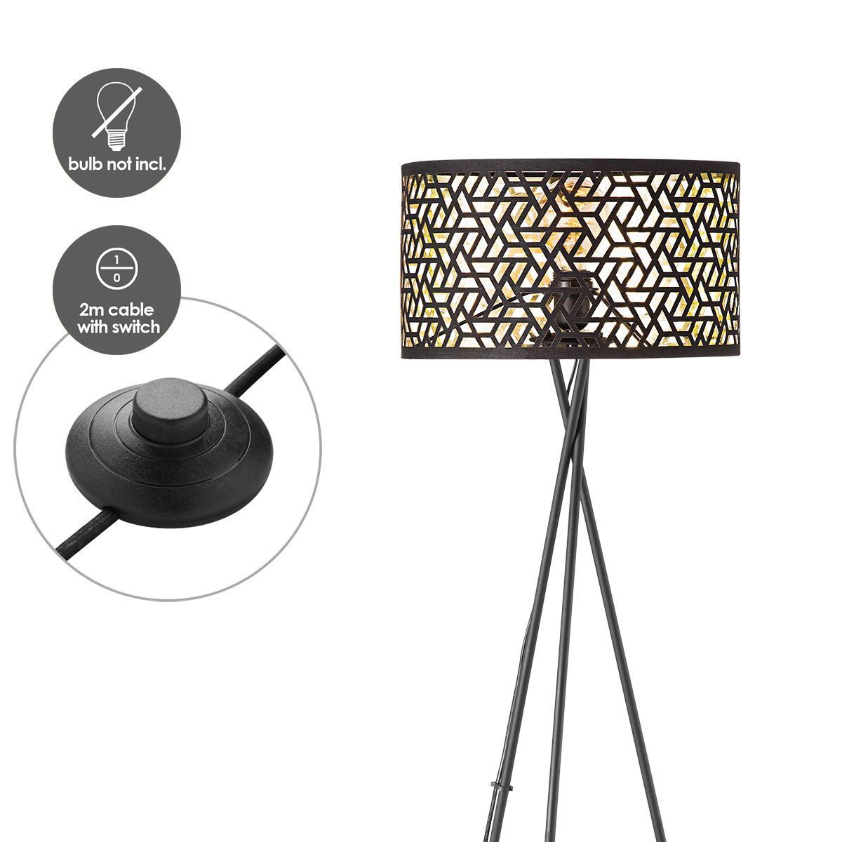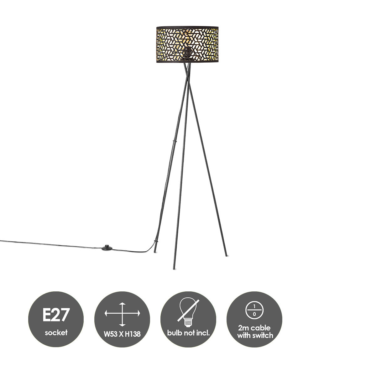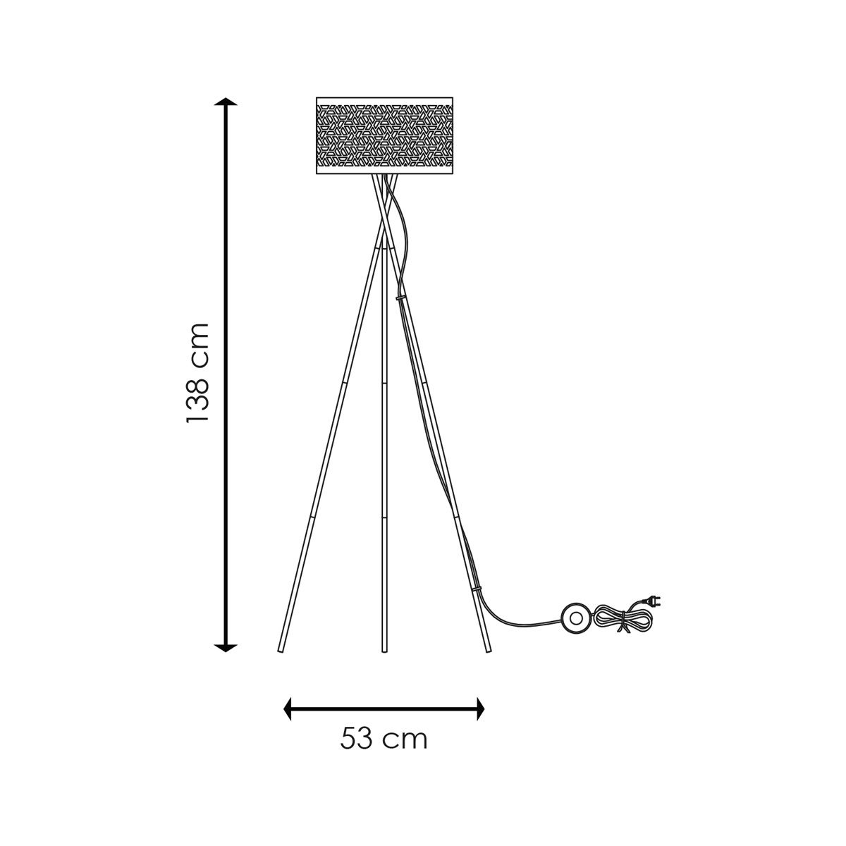 - Legs is totaal 53 cm breed, de totale lamphoogte is 138 cm