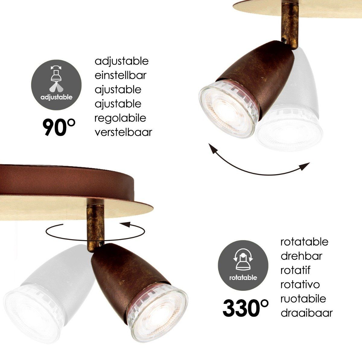 - De spots zijn verstelbaar, kantelbaar en draaibaar. Ideaal voor het verlichten van de woonkamer, slaapkamer, studeerkamer, hobby ruimte en de hal.