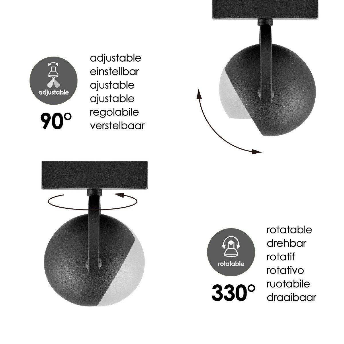 - De spots zijn verstelbaar, kantelbaar en draaibaar. Ideaal voor het verlichten van de woonkamer, slaapkamer, studeerkamer, hobby ruimte en de hal.