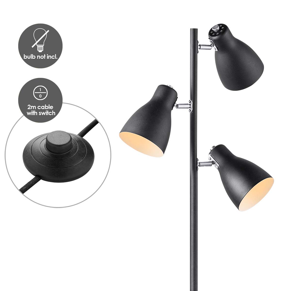 - 3 verstelbare lichtpunten met E27 fittingen (excl. lichtbronnen)