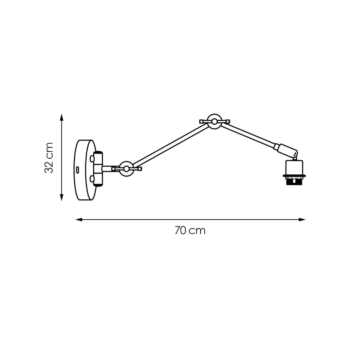 - Shift wandlamp zonder kap, Afmetingen: 70 cm breed x 70 cm diep x 32cm hoog, ideaal voor lampenkappen met max. 20cm lampenkap