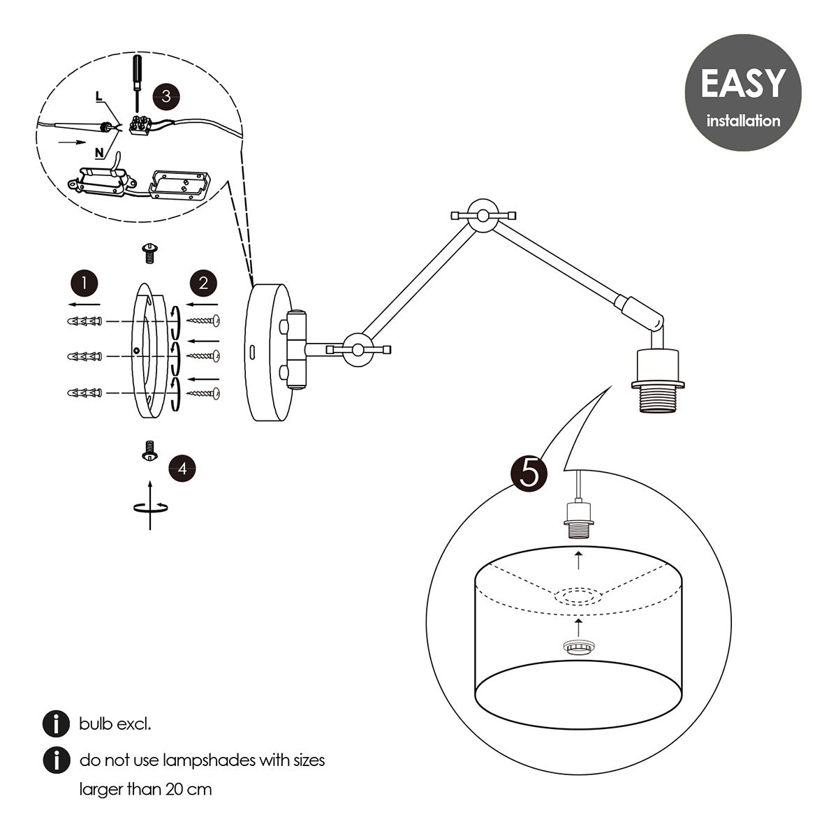 - Verstelbare scharnierpunten aan de armen - te gebruiken als leeslamp, bureaulamp of sfeervolle wandlamp