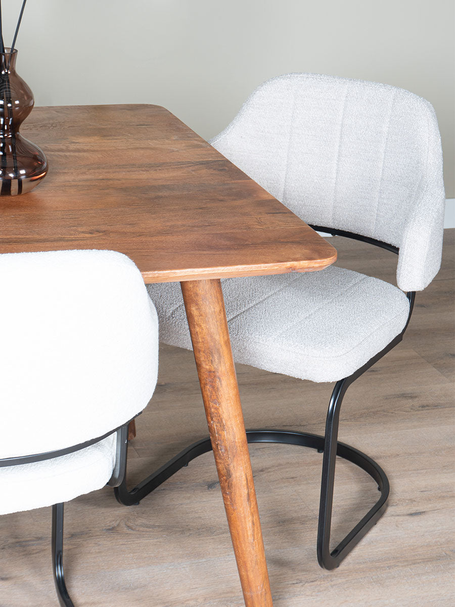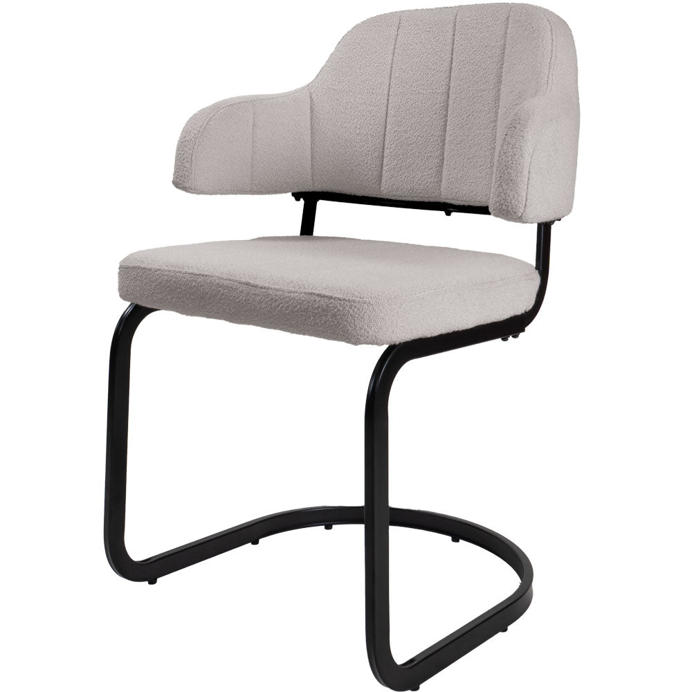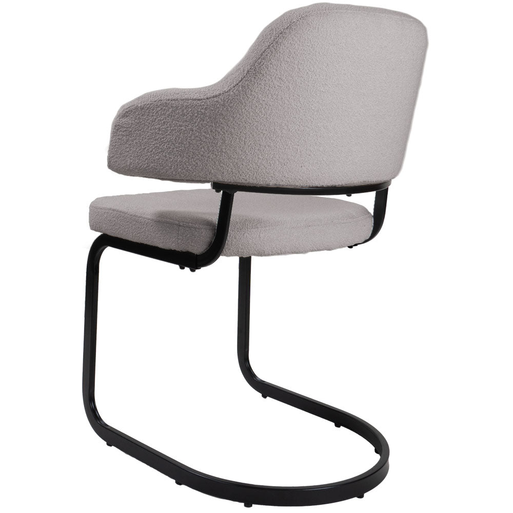 - Dankzij de boucle stof die niet alleen zacht aanvoelt, maar ook een chique uitstraling heeft en het metalen onderstel geeft de stoel een