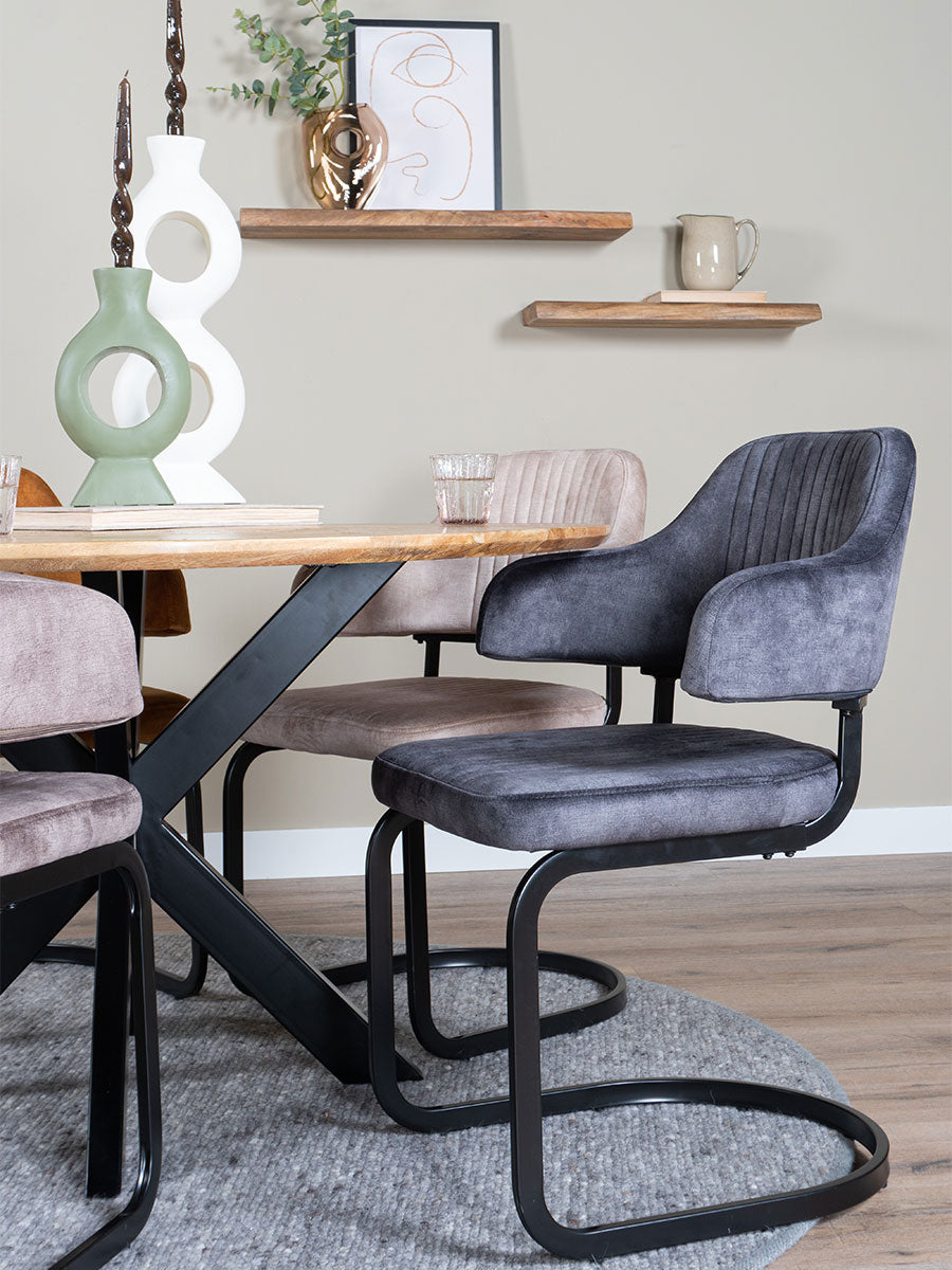 - De brede, rondlopende armleuningen van eetkamerstoel Fox zorgen ervoor dat je heerlijk lang kan tafelen