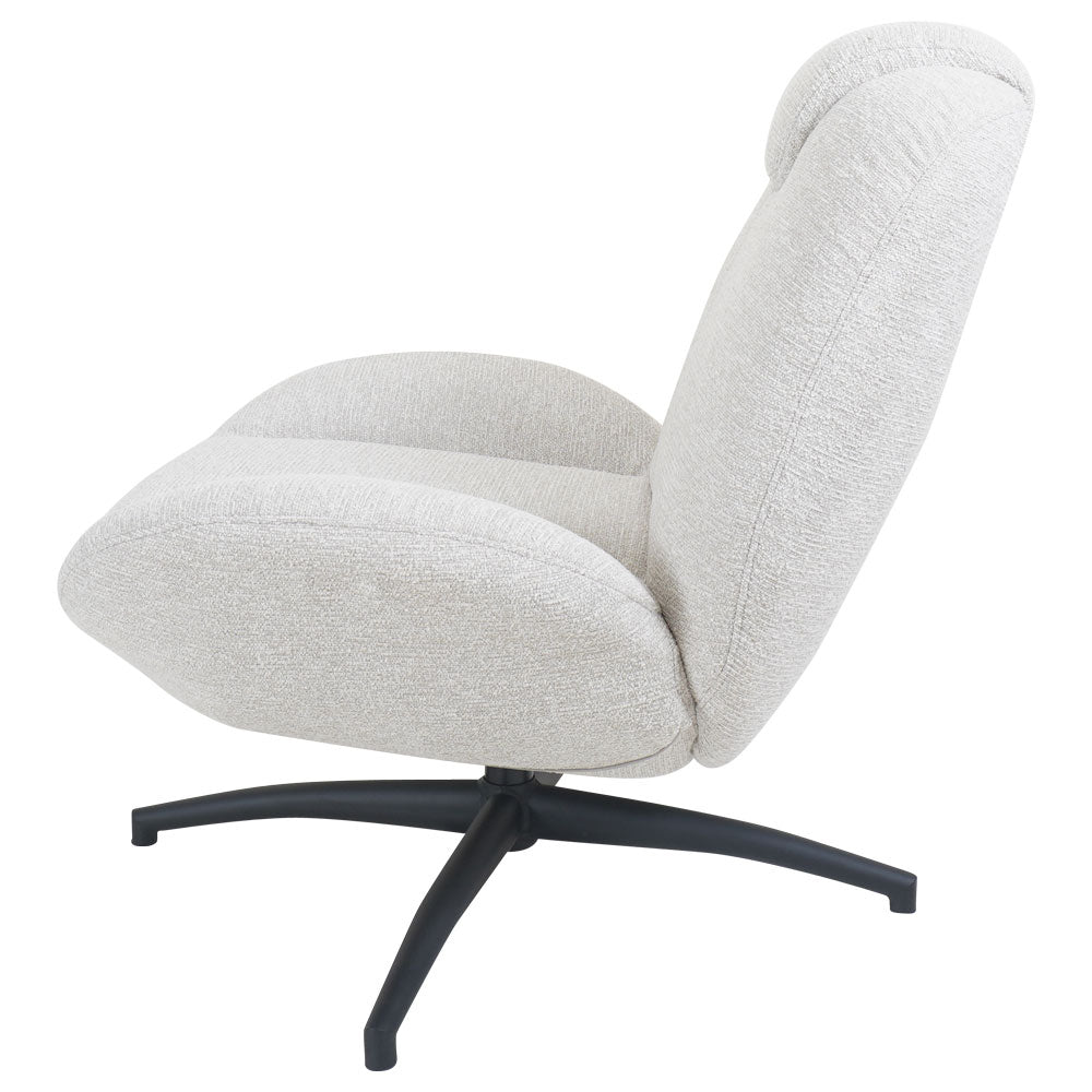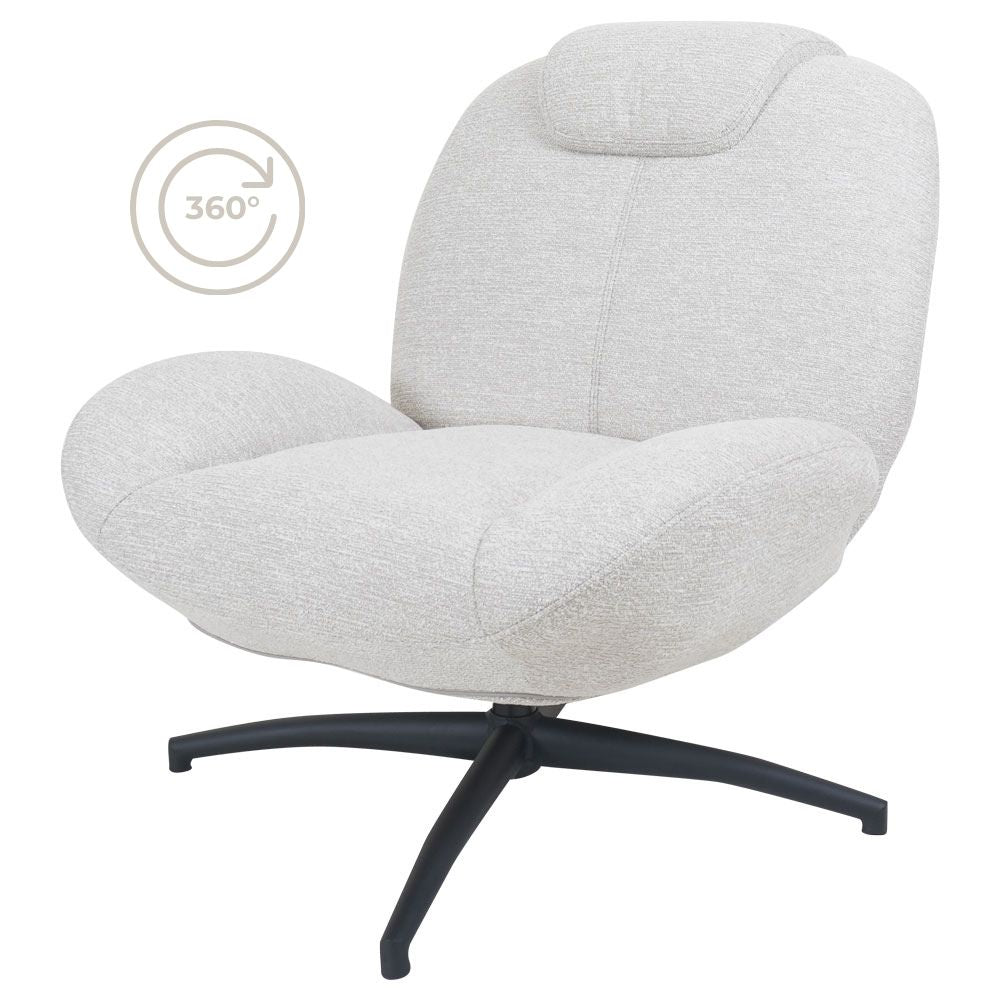 - De fauteuil is bekleed in een neutrale, lichte kleur die goed in diverse woonstijlen past