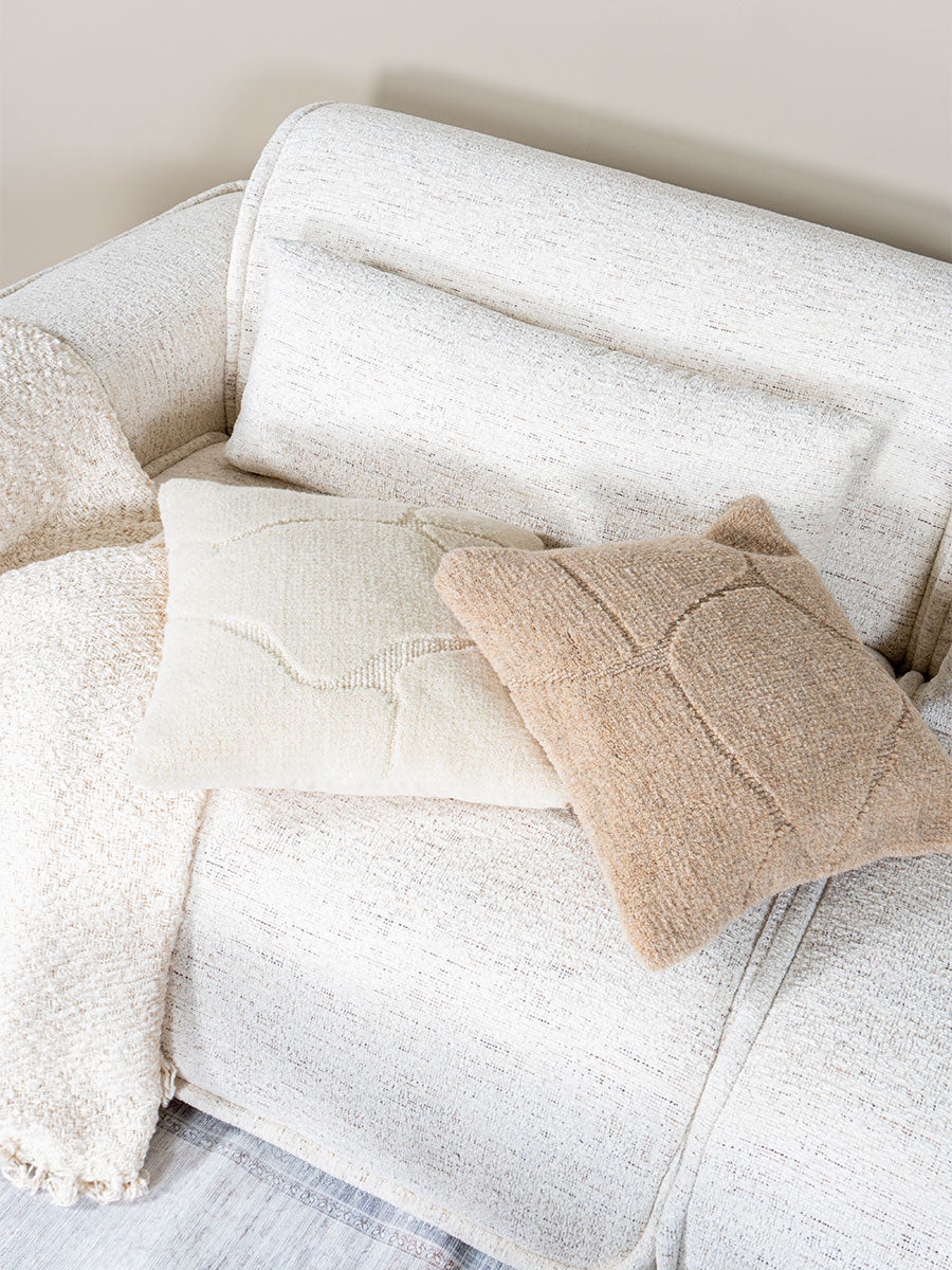 - De witte kleur geeft een frisse look aan je huis en het kussen is beschikbaar in twee maten