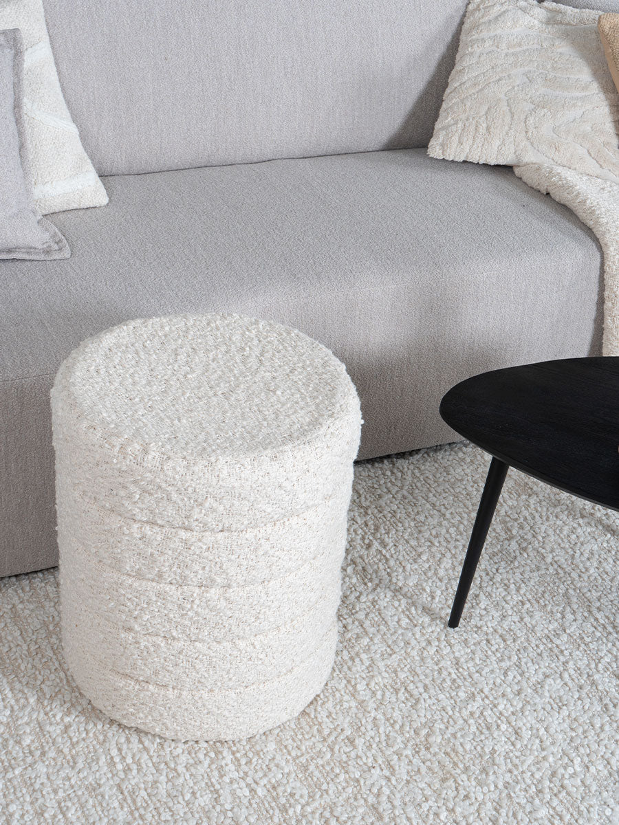 - Deze teddy poef voegt een vleugje glamour toe met zijn gelaagde ontwerp, een stijlvolle upgrade voor elke ruimte