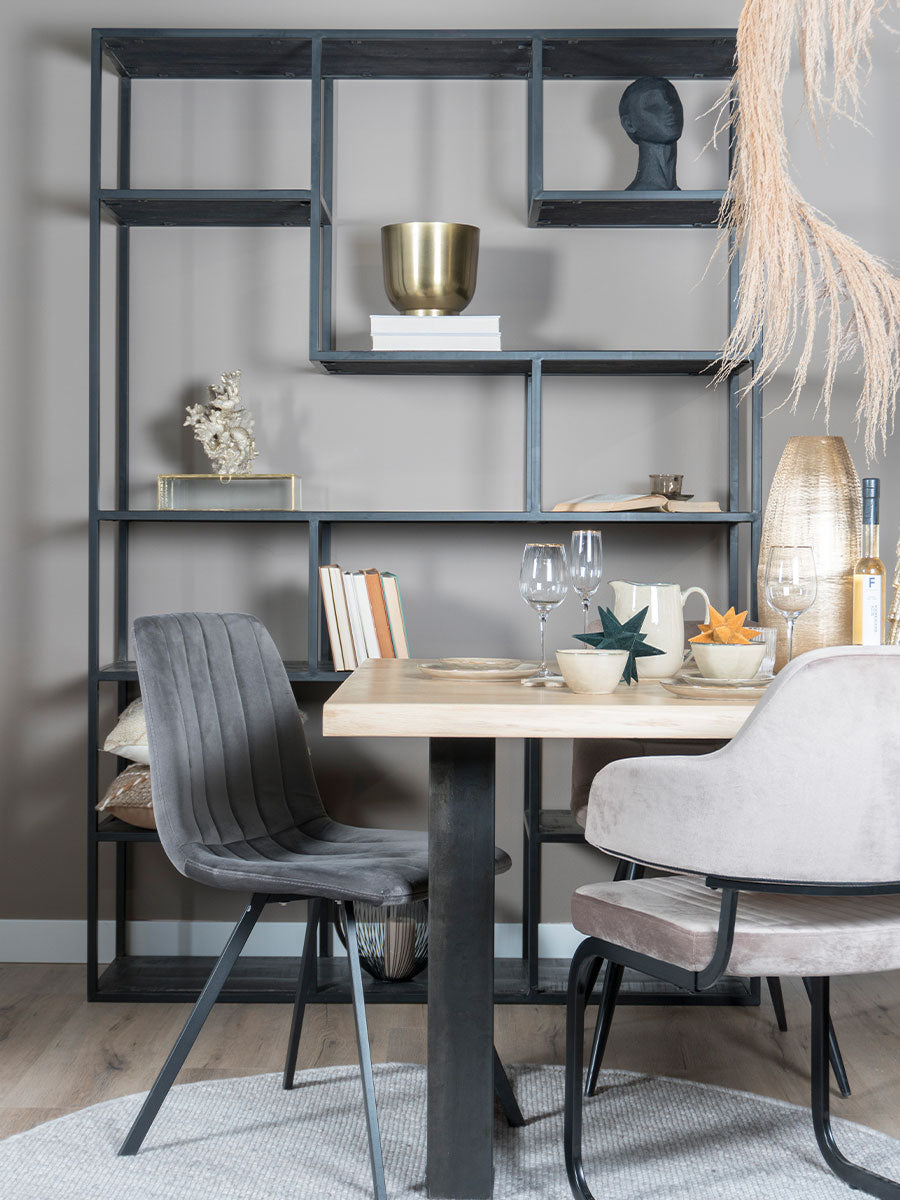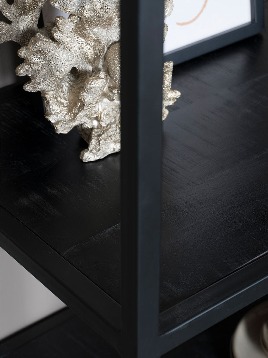 - Vakkenkast Huub combineert zwart mangohout met zwart metaal