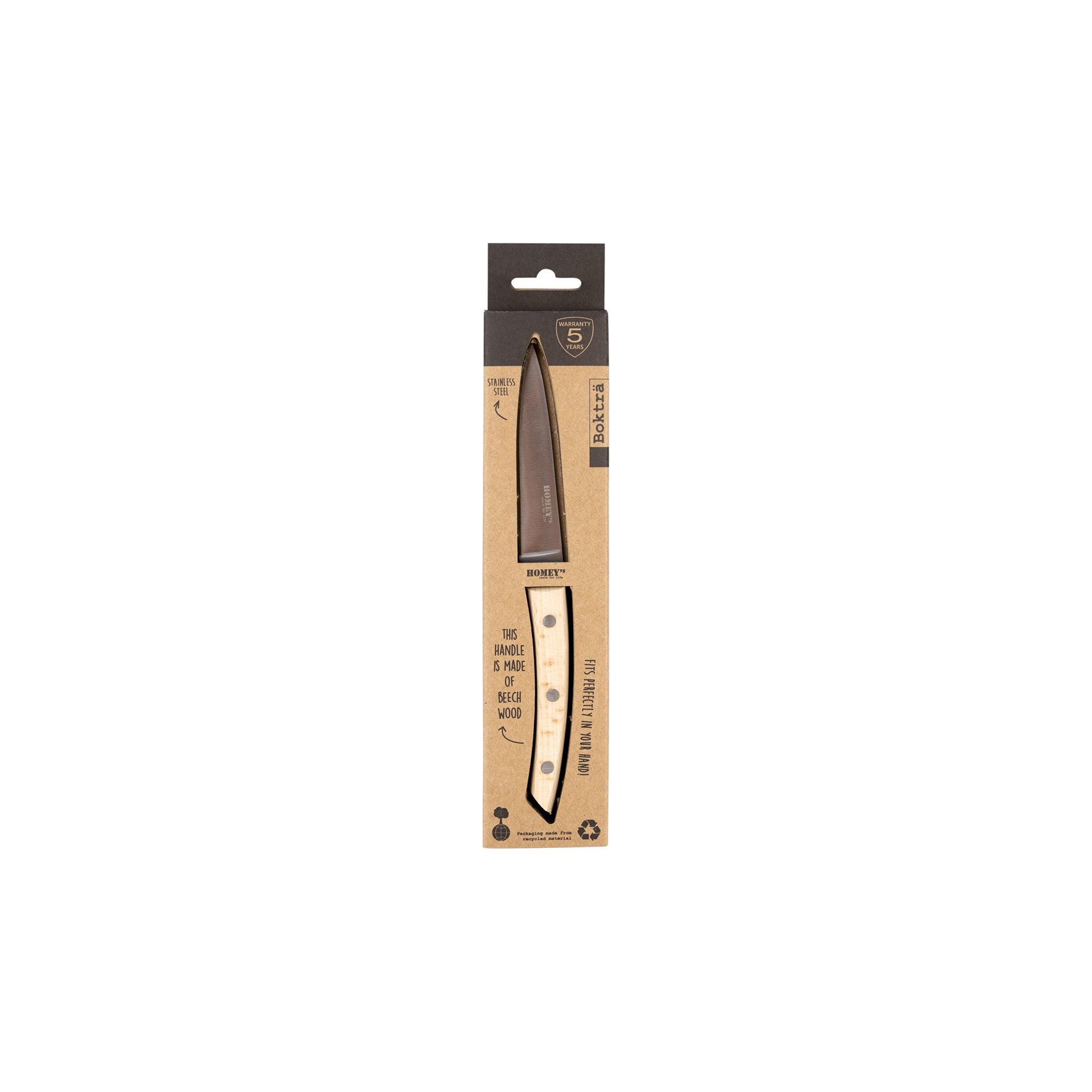 - Het Homey's Bokträ universele keukenmes komt in een duurzame verpakking gemaakt van gerecycled karton. Niet in vaatwasser, afwassen met hand.