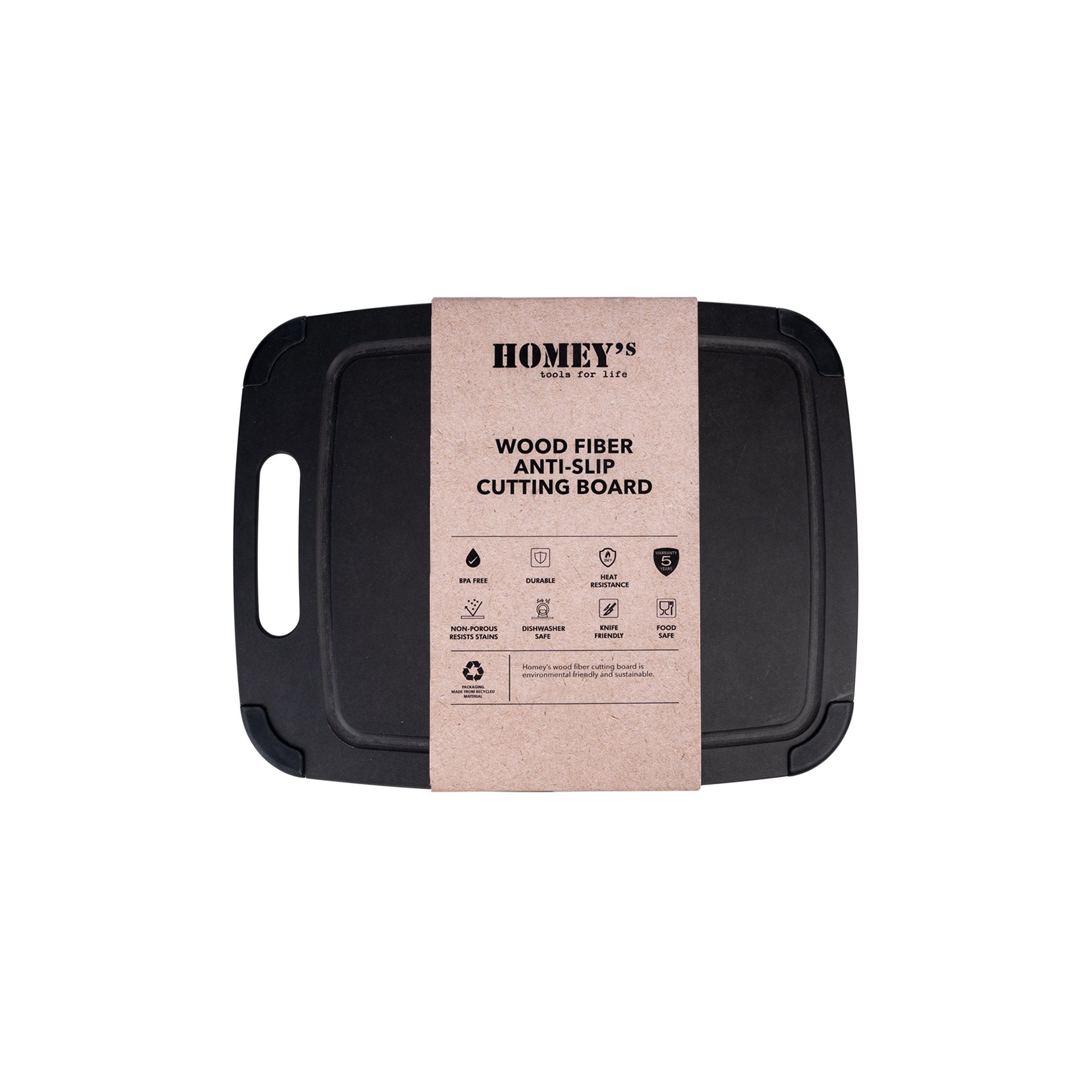 Homey's snijplank - 300x235mm - houtvezel - zwart - antislip - sleeve