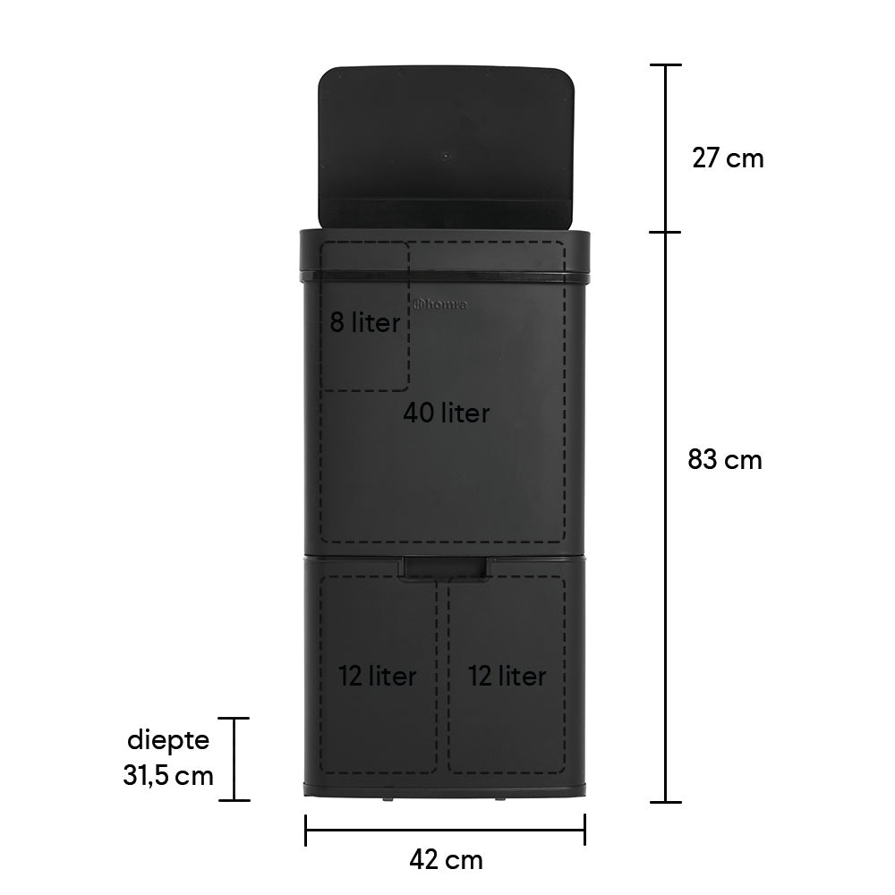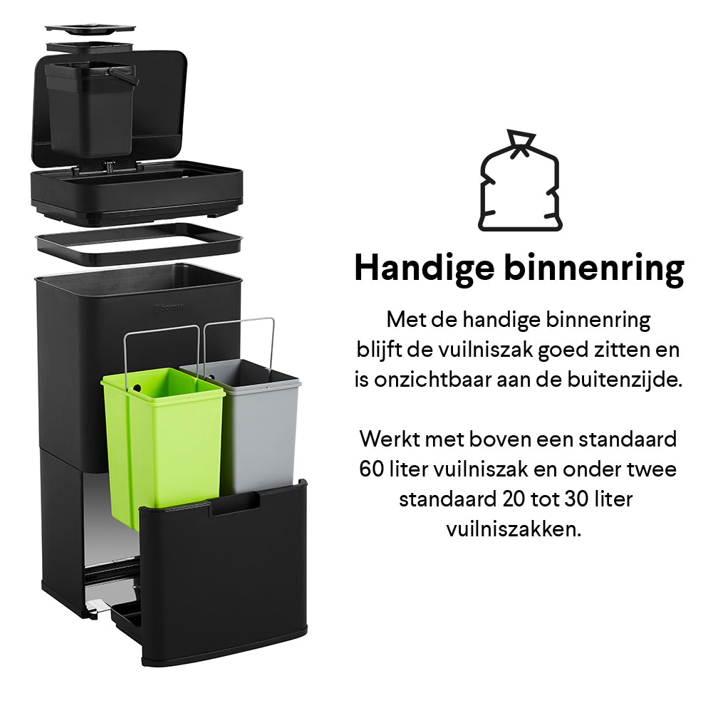 | Prullenbakopties | Afvalscheiding, Losse binnenemmer, Reukdicht, Vingerafdrukvrij |