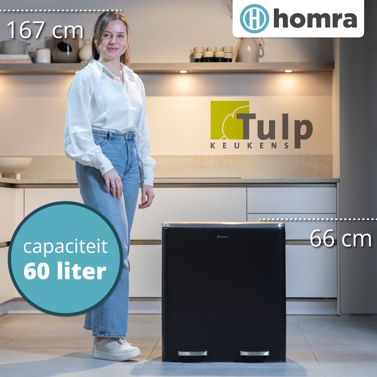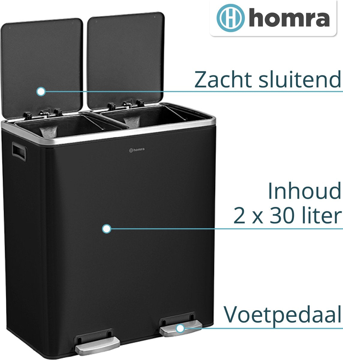 Homra QUICKX Duo Prullenbak - Afvalemmer Afvalscheiding 2 vakken – 60L
