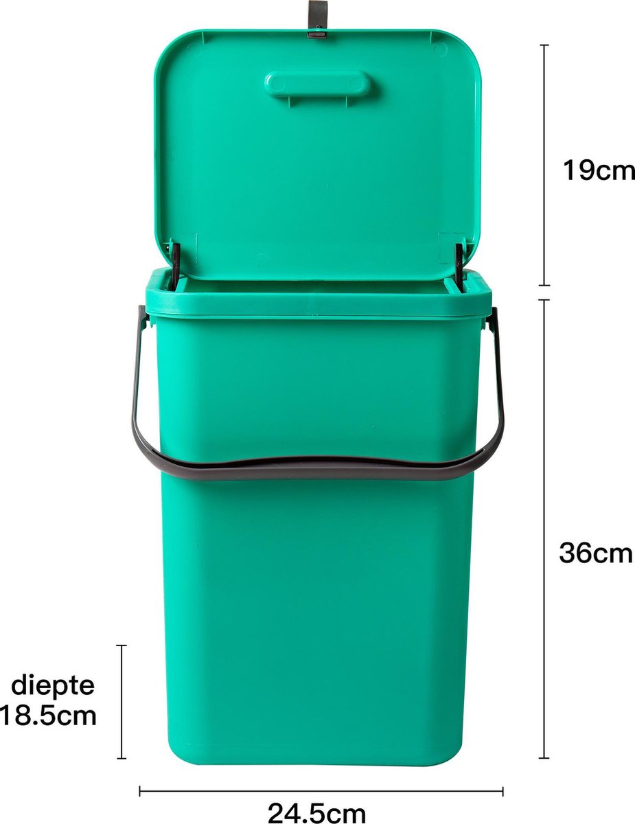 12 liter inhoud Makkelijk te monteren Eindeloos combineren 1 jaar garantie Afmetingen: 18,5 cm diep x 24,5 cm breed x 36 cm hoog (met gesloten deksel)