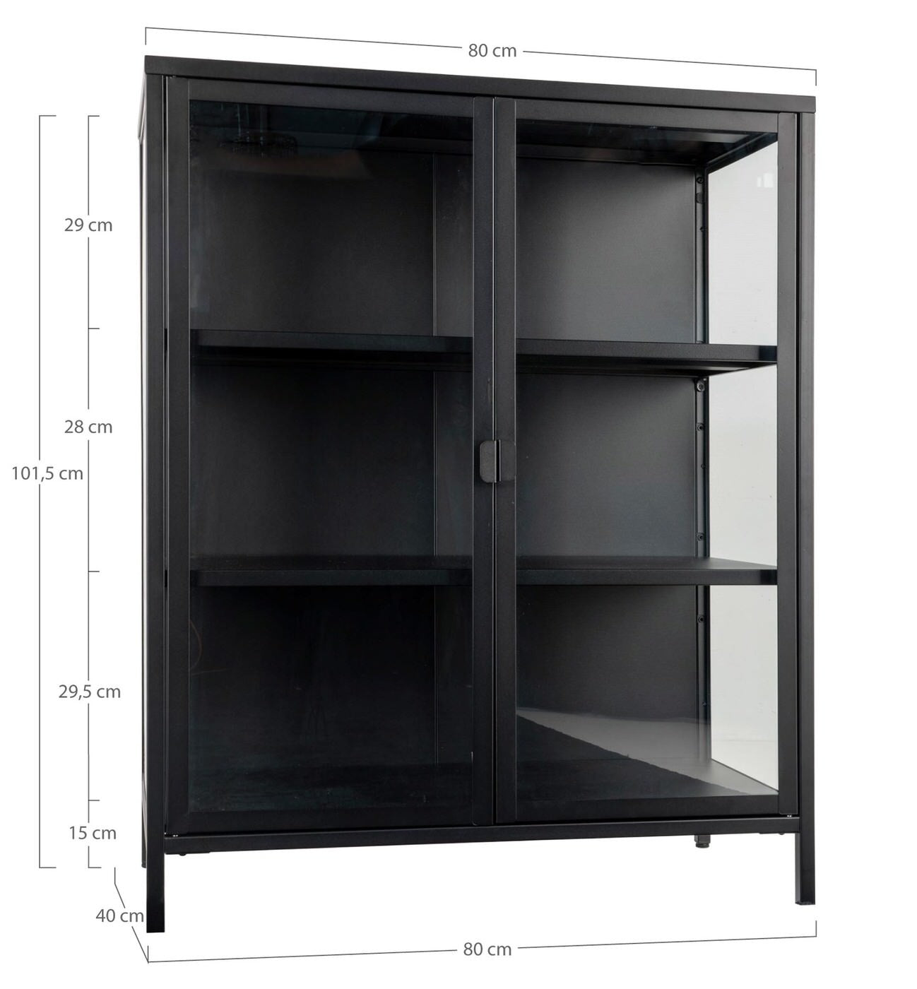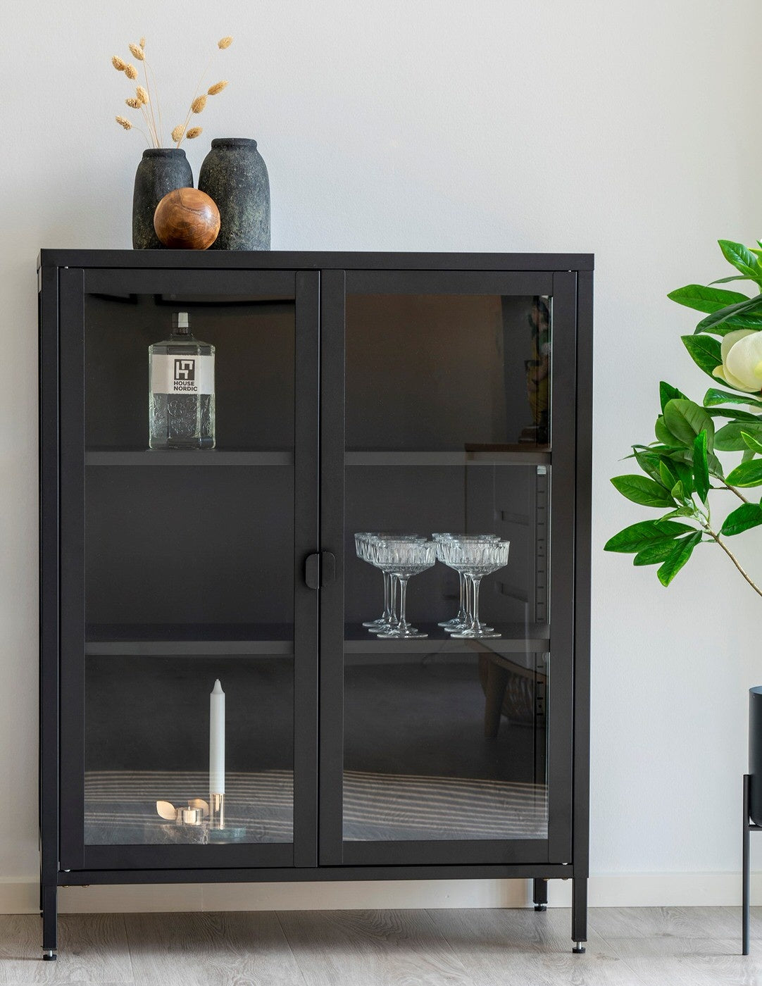 House Nordic Brisbane Zwart | Glas Vitrinekast H101 cm