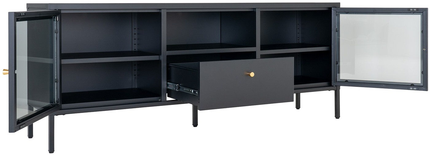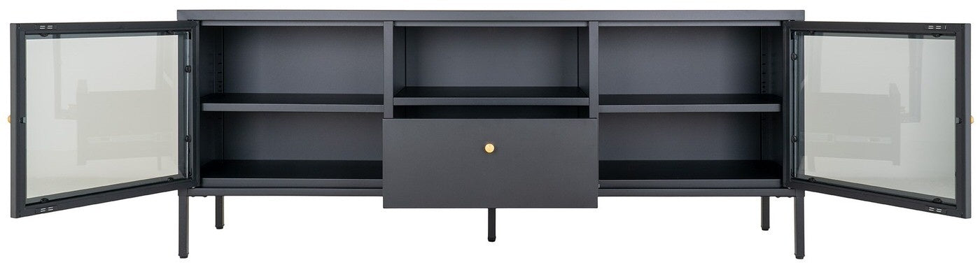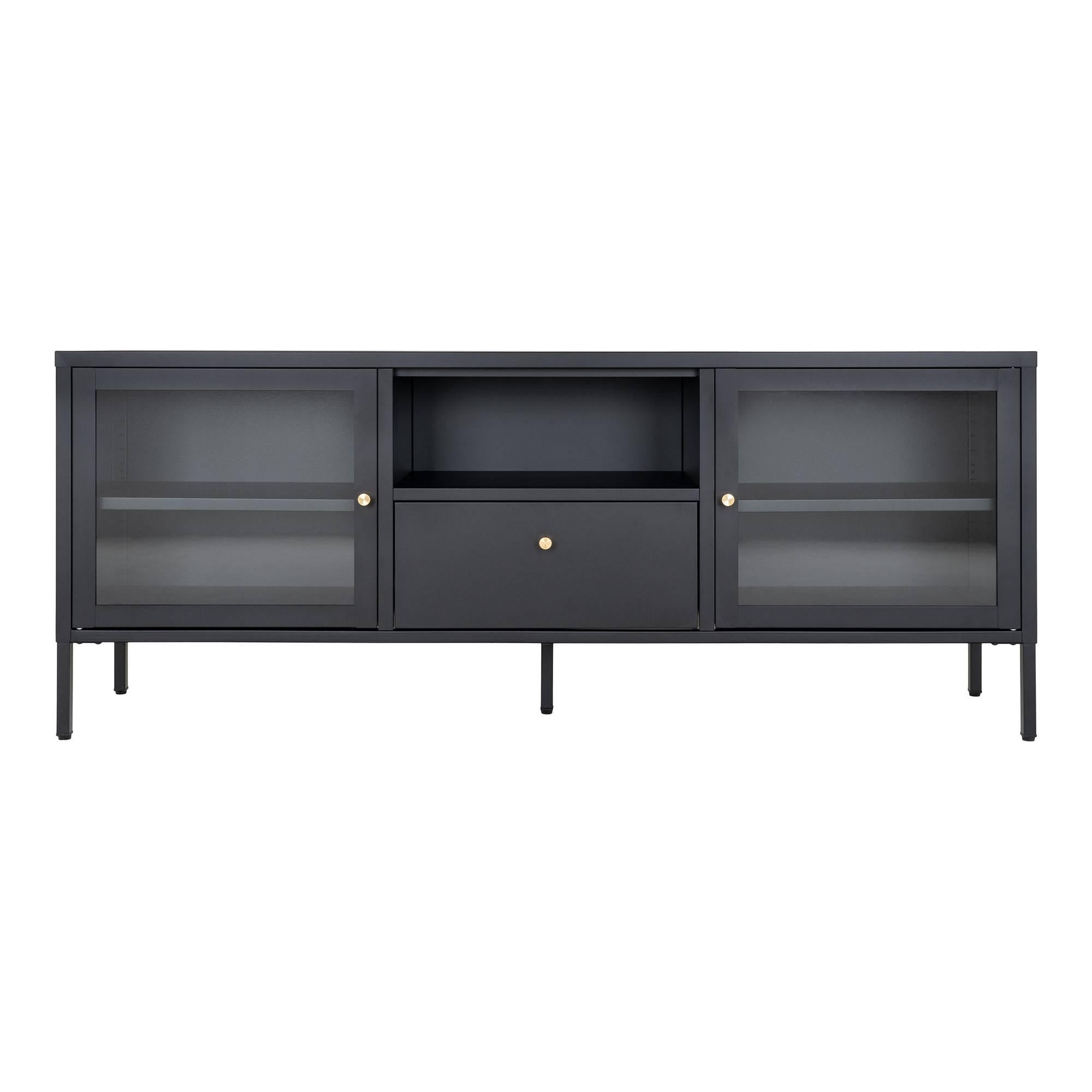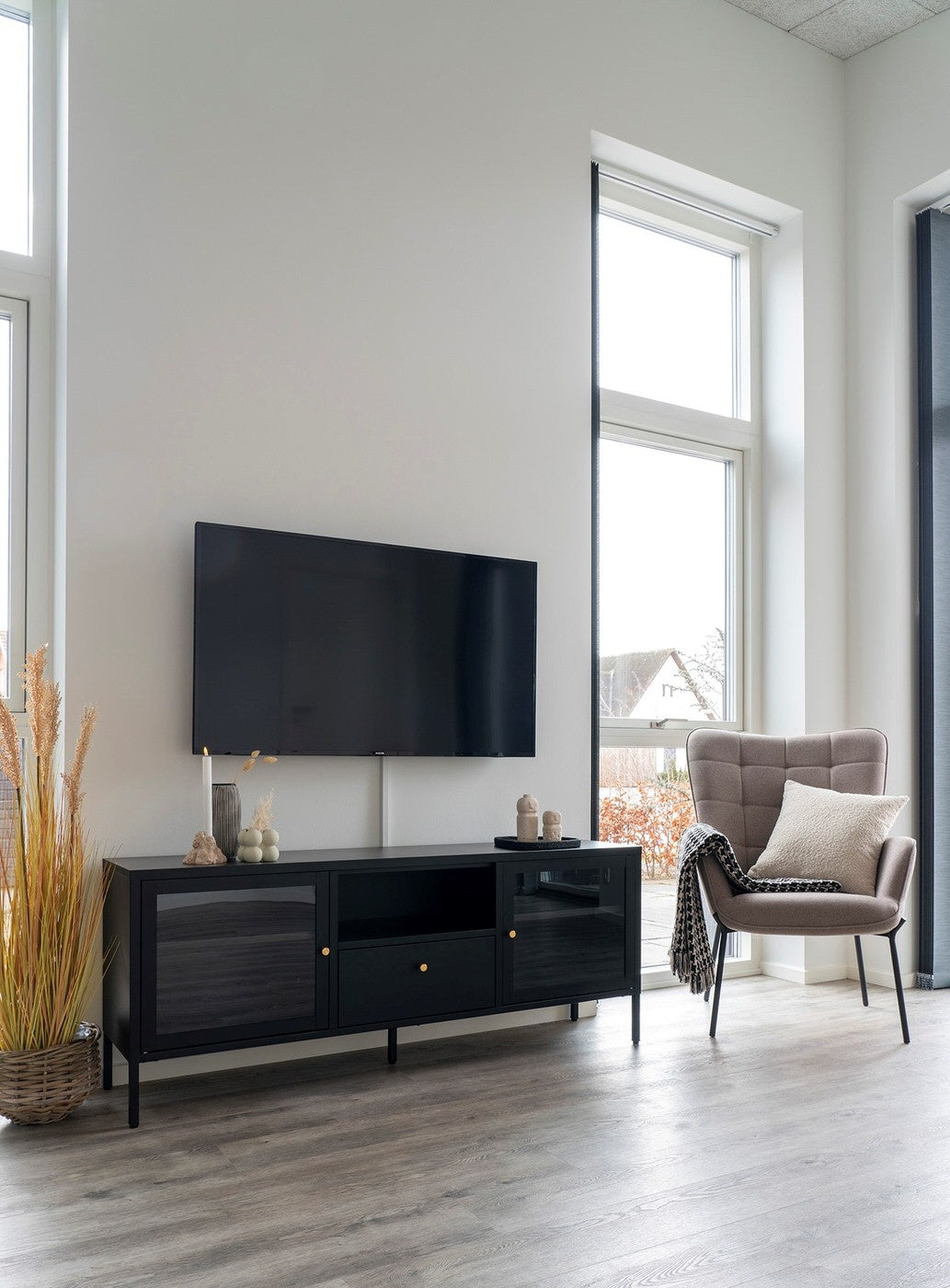 House Nordic Dalby Zwart | Glas TV Meubel 2-Deuren 1-Lade