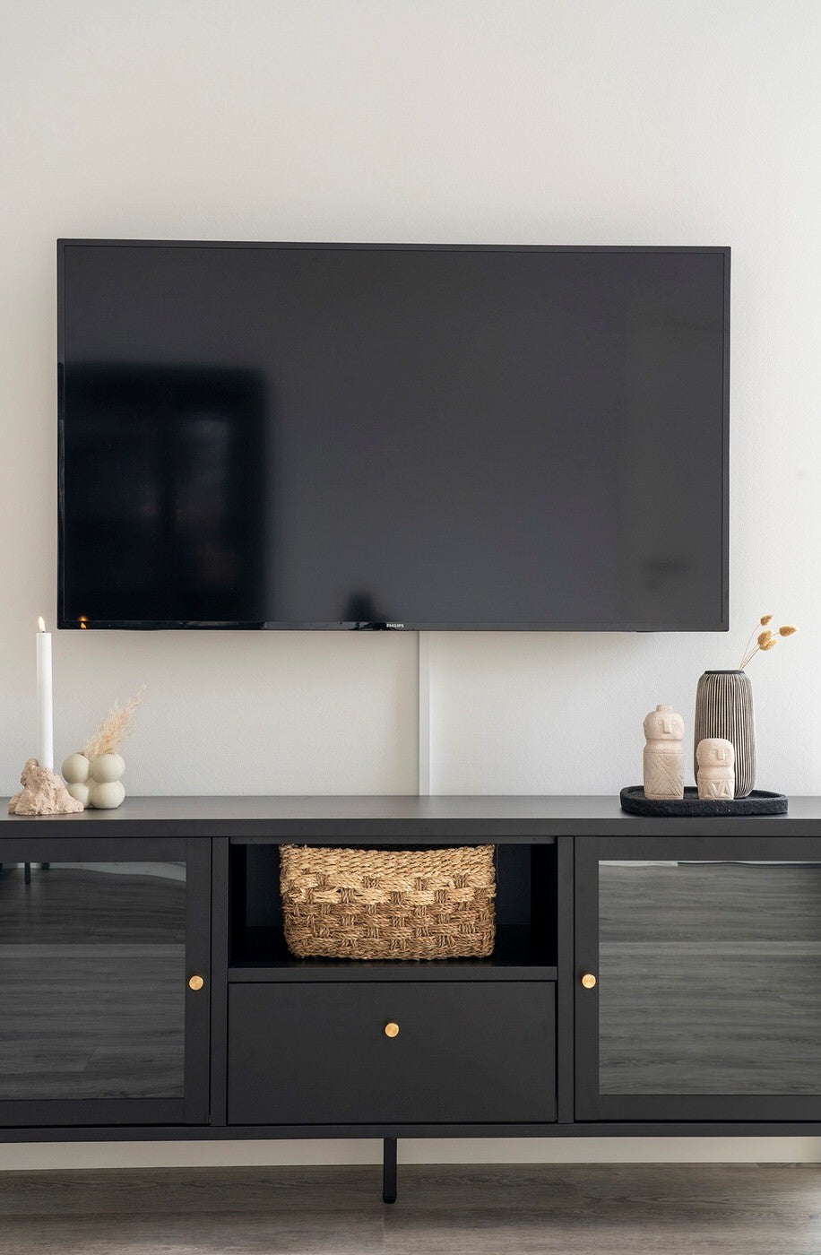 - 1 x Dalby TV-meubel 2 glazen deuren, 1 lade, 1 plank zwart.