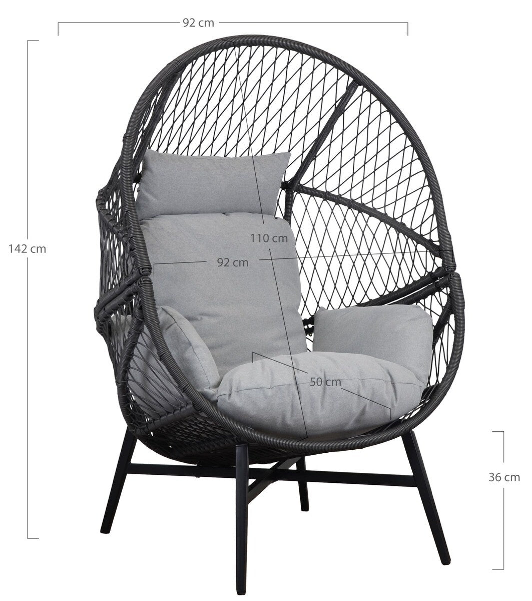 - 1 x Rosario leunstoel tuin incl. kussen buitenshuis zwart.