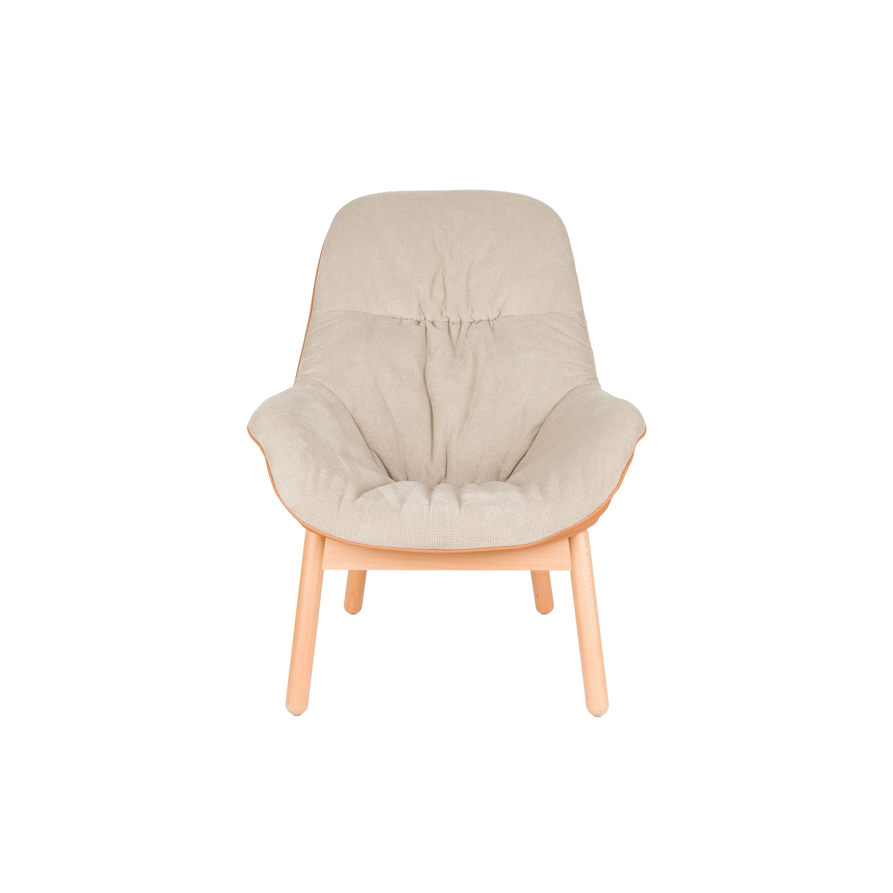 - De zitting is gemaakt van zachte, beige stof.