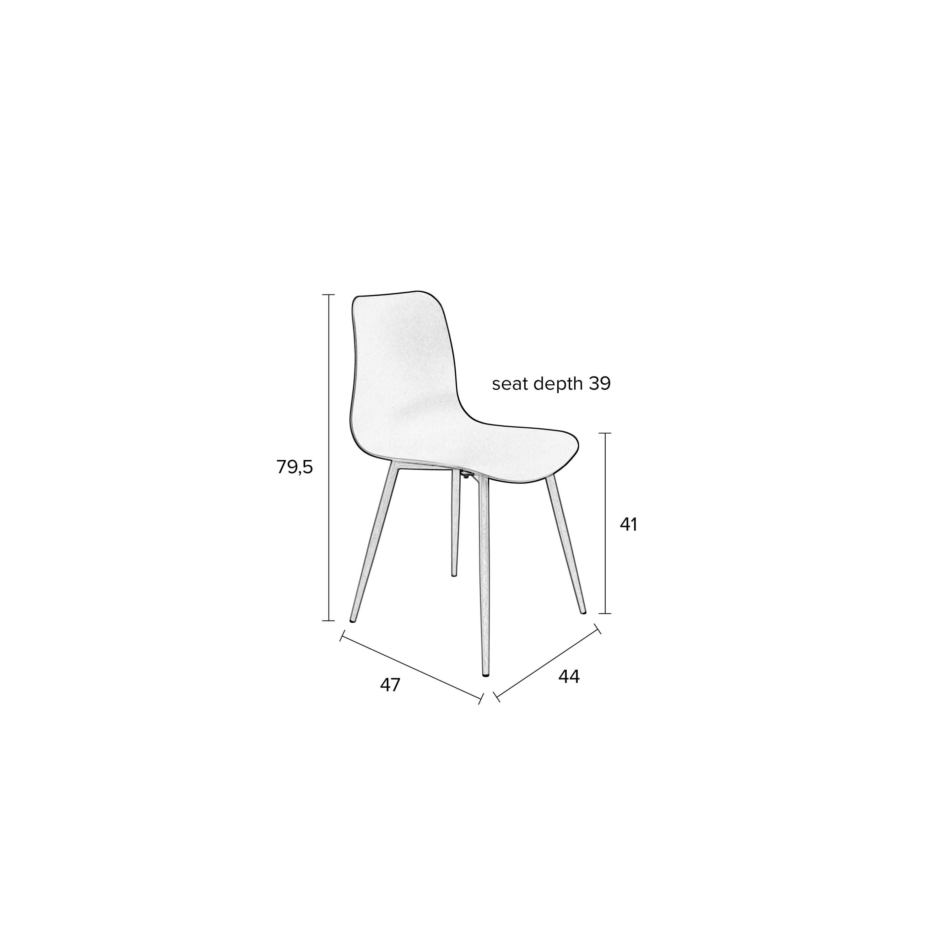 De hoogte van de zitting, gemeten vanaf de vloer. De ideale zithoogte bevindt zich tussen de 40 en 46 cm. Je zit het lekkerst met een ruimte van ongeveer 20 cm, tussen de stoelzitting en de onderkant van het tafelblad.