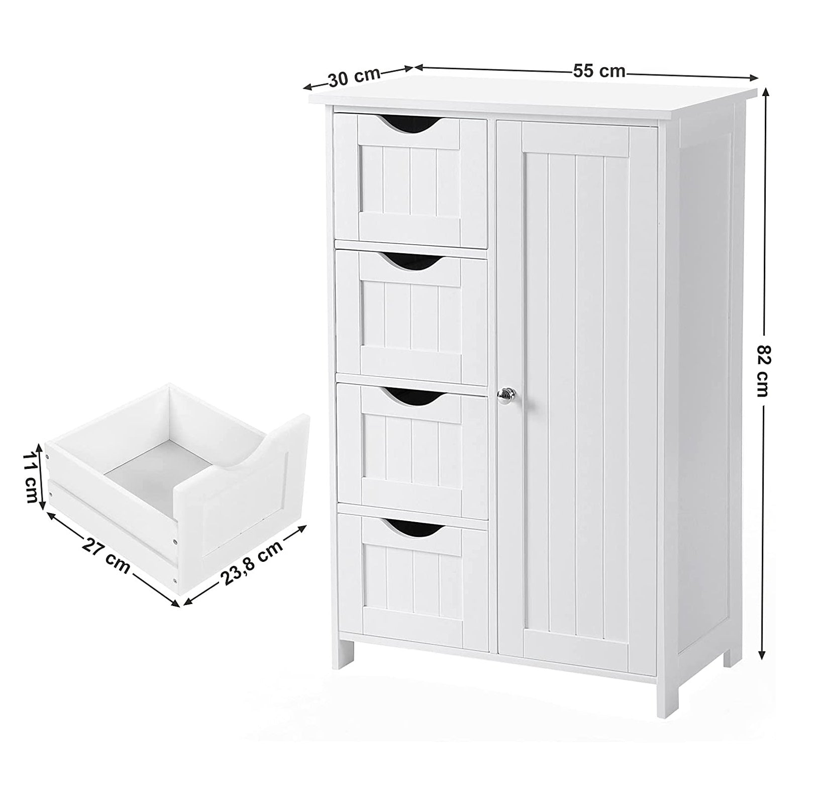 De kast heeft een vocht- en schimmelbestendige lak, hierdoor wordt de kast niet lelijk als het lang in een vochtige ruimte staat zoals een badkamer. De ladekast staat stevig en kan ook met de meegeleverde kantelbeveiliging vast aan de muur worden bevestigd om ongelukken te voorkomen. Er wordt een duidelijke handleiding meegeleverd, hierdoor kan iedereen de kast in elkaar zetten.