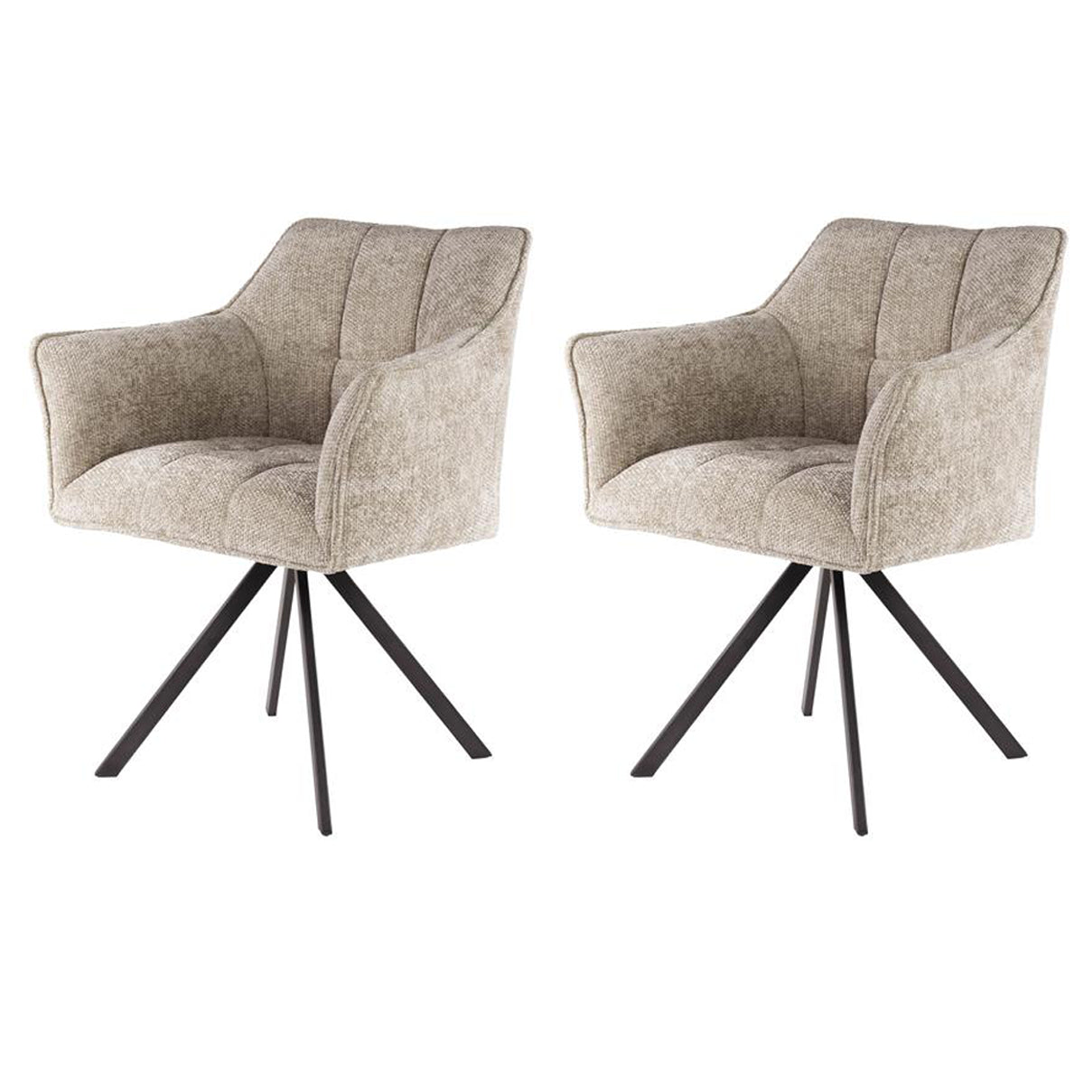 Deze stijlvolle draaibare eetkamerstoel met een metalen onderstel voegt een modern accent toe aan ieder interieur. Verkrijgbaar in drie verschillende stoffen en meerdere kleuren, biedt deze stoel niet alleen comfort, maar ook veelzijdigheid. Combineer de stoel met de bijpassende eetkamerbank en barstoel. De stoel is per 2 stuks verpakt. Over het merk Wij zijn continu bezig met het samenstellen van stoere collecties die naast functioneel ook nog is heel trendy zijn. Veel van ons assortiment is zo ontworpen dat het leuk bij elkaar staat in elke kamer, daarom raden wij zeker aan om even een kijkje te nemen in ons assortiment voor leuke matchende items!