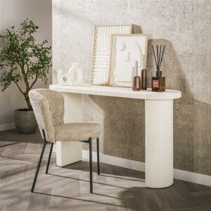 Deze prachtige 'arch stone' haltafel is uitgevoerd in marmer composiet. Een eigentijdse haltafel met een frisse uitstraling. De haltafel beschikt over kolompoten bestaande uit een halve maan. Er kan dus gemakkelijk een stoel onder wordt geplaatst zodat deze ook als kaptafel kan dienen. Deze haltafel is perfect te combineren met de bijpassende salontafel of eetkamertafel. Over het merk Wij zijn continu bezig met het samenstellen van stoere collecties die naast functioneel ook nog is heel trendy zijn. Veel van ons assortiment is zo ontworpen dat het leuk bij elkaar staat in elke kamer, daarom raden wij zeker aan om even een kijkje te nemen in ons assortiment voor leuke matchende items!