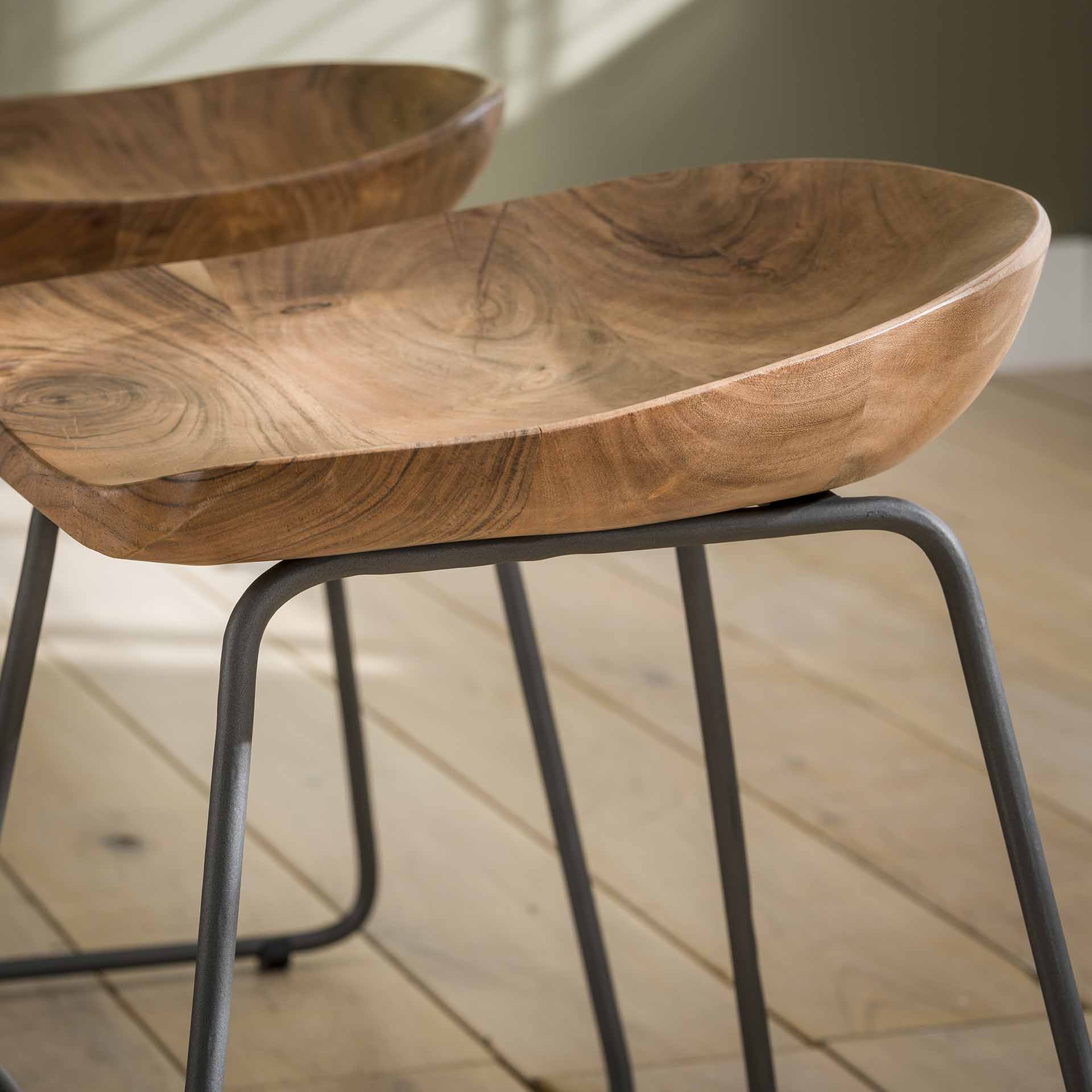 Deze trendy stoel is gemaakt van acacia hout. De stoel is voorzien van een lage zitting, met een gepoedercoat frame. De zitting is goed afgewerkt, wat de stoel comfortabel maakt. Deze eigentijdse, stoere stoel is een echte must have. De eetkamerstoel is leverbaar per set van twee stuks in dezelfde kleur.