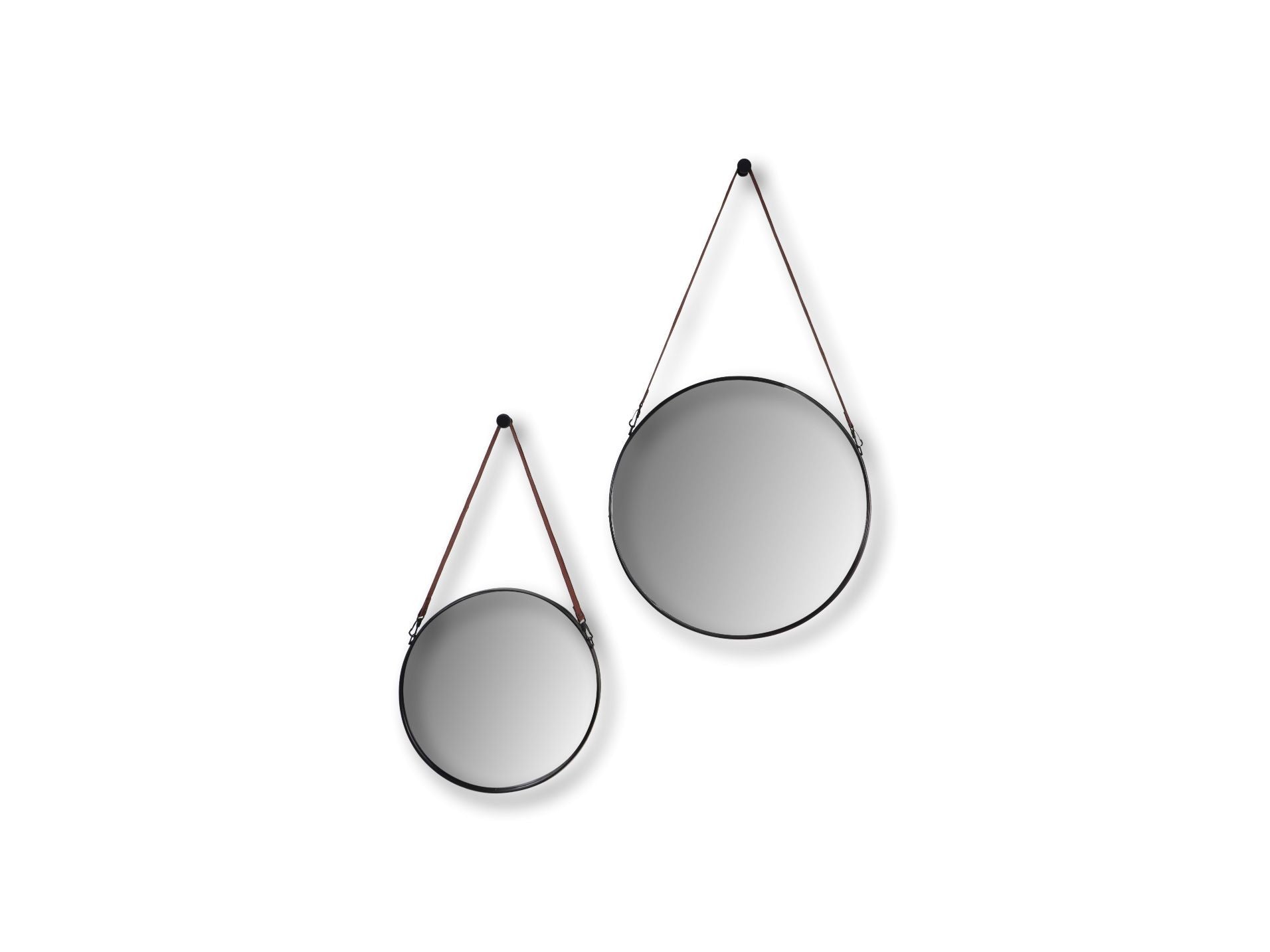 HSM Collection Ronde Wandspiegel incl Riem Zwart Bruin Ø 60cm