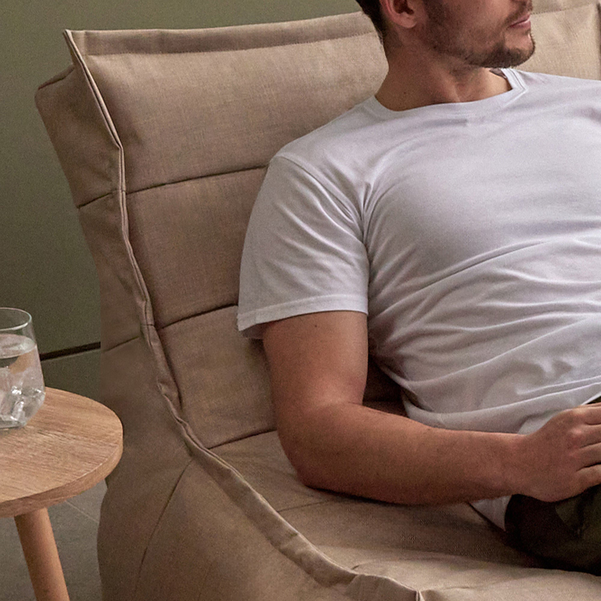 - icon Dolce lounger zitzak met bijpassende poef, gemaakt van duurzame geweven stof – waterafstotend en geschikt voor zowel binnen als buiten