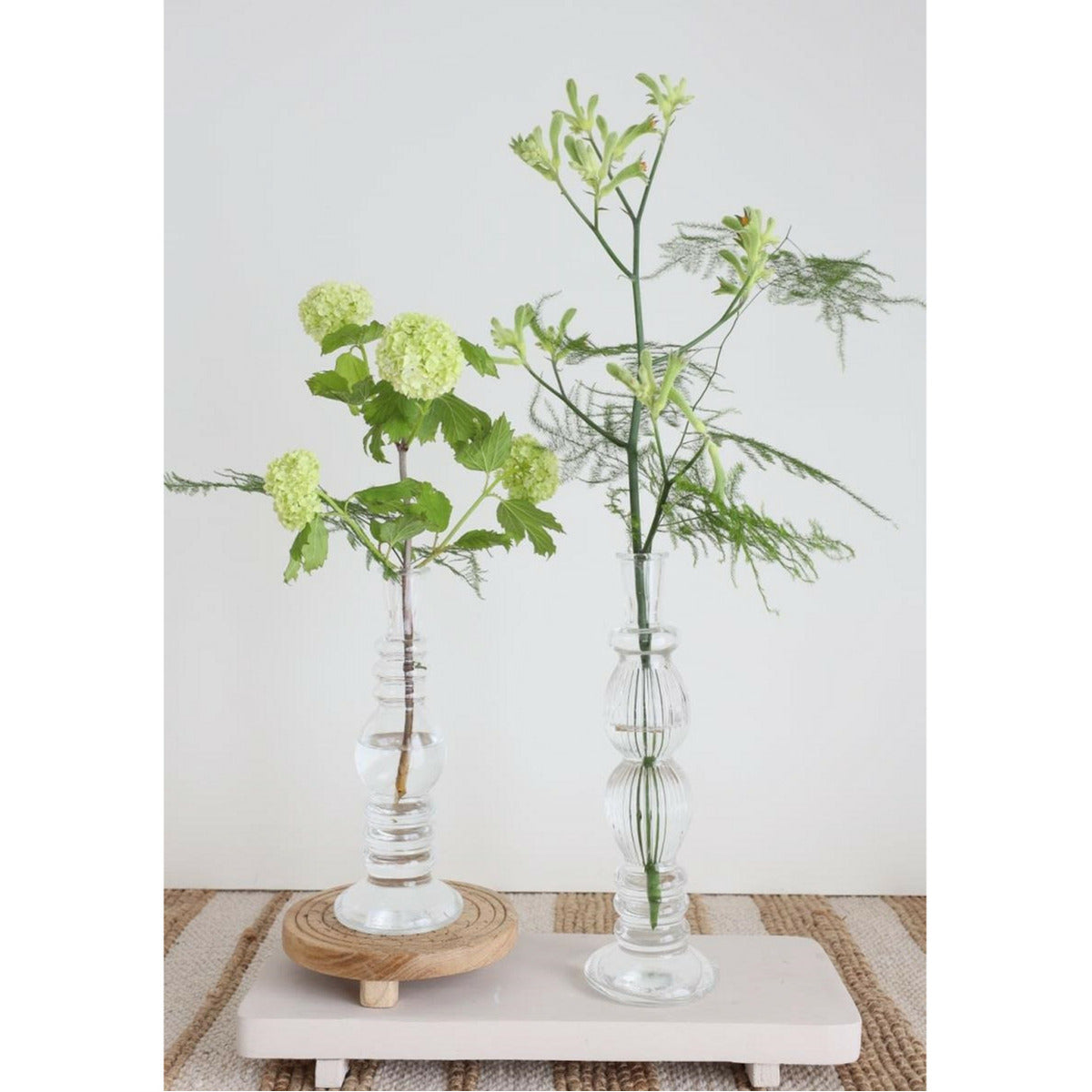 Dankzij de smalle opening blijven bloemen mooi op hun plek, waardoor je moeiteloos een subtiele of speelse bloemencompositie creeert. Ideaal voor een enkele bloem of een kleine bos decoratieve takken. Voeg een vleugje kleur en elegantie toe aan je interieur met deze stijlvolle glazen vaas!