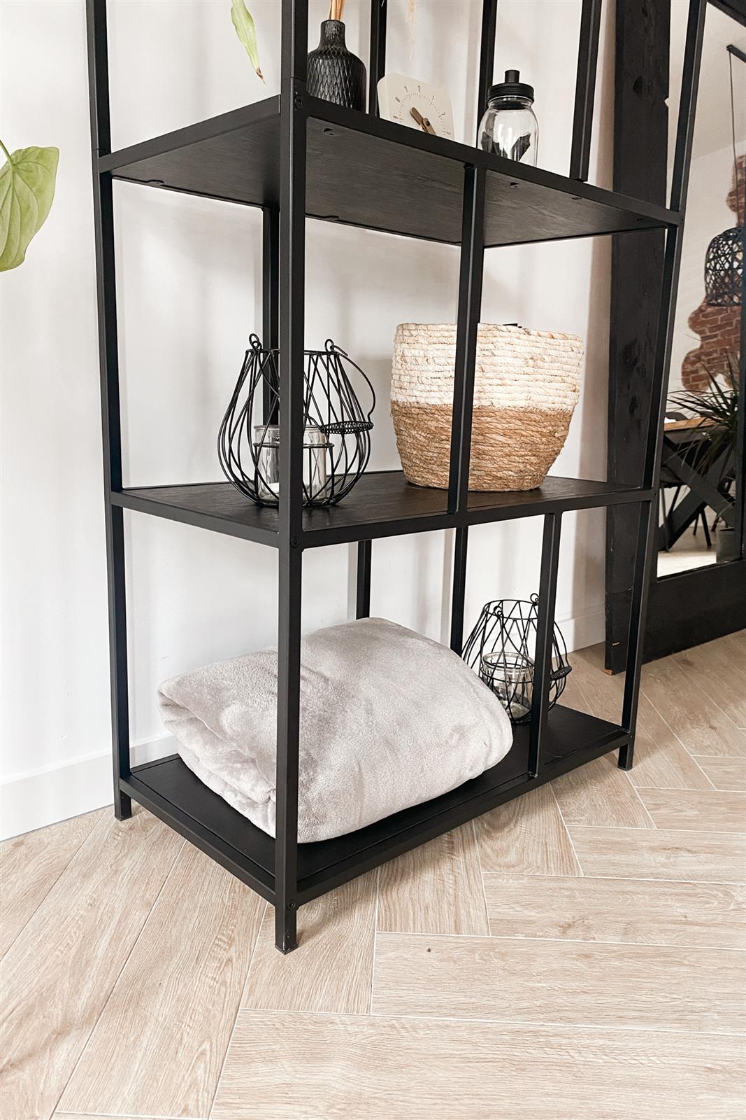 Nieuw in ons assortiment is onze stoere zwarte wandkast Chicago. Deze robuust en stabiel uitgevoerde wandkast is namelijk extra diep (40 cm) en extra hoog (190 cm) uitgevoerd. Door de kwalitatief hoogwaardige uitvoering hebben de schappen een draagkracht van maar liefst 150 kg, dus ook perfect voor winkels! Industriële wandkast Chicago is voorzien van mat zwarte pinewood fineer planken die door het gladde oppervlak eenvoudig zijn schoon te houden in tegenstelling tot ruw mangohout. Het frame is voorzien van een mat zwarte poedercoating en onder de voetjes vind je stelpootjes die ervoor zorgen dat je kast stabiel staat. Voor de veiligheid worden er twee muurbeugeltjes meegeleverd zodat je zeker weet dat je kast veilig staat. Deze wandkast is ook verkrijgbaar met rustiek eiken fineer planken. Waarom worden wij zo blij van onze industriële wandkast Chicago? - Extra diepe (40 cm) en extra hoge (190 cm) uitvoering - Eenvoudig schoon te houden, fineer schappen - Verstelbare voetjes voor stabiele plaatsing - Bouwpakket, dus eenvoudig op te bouwen op de juiste plaats