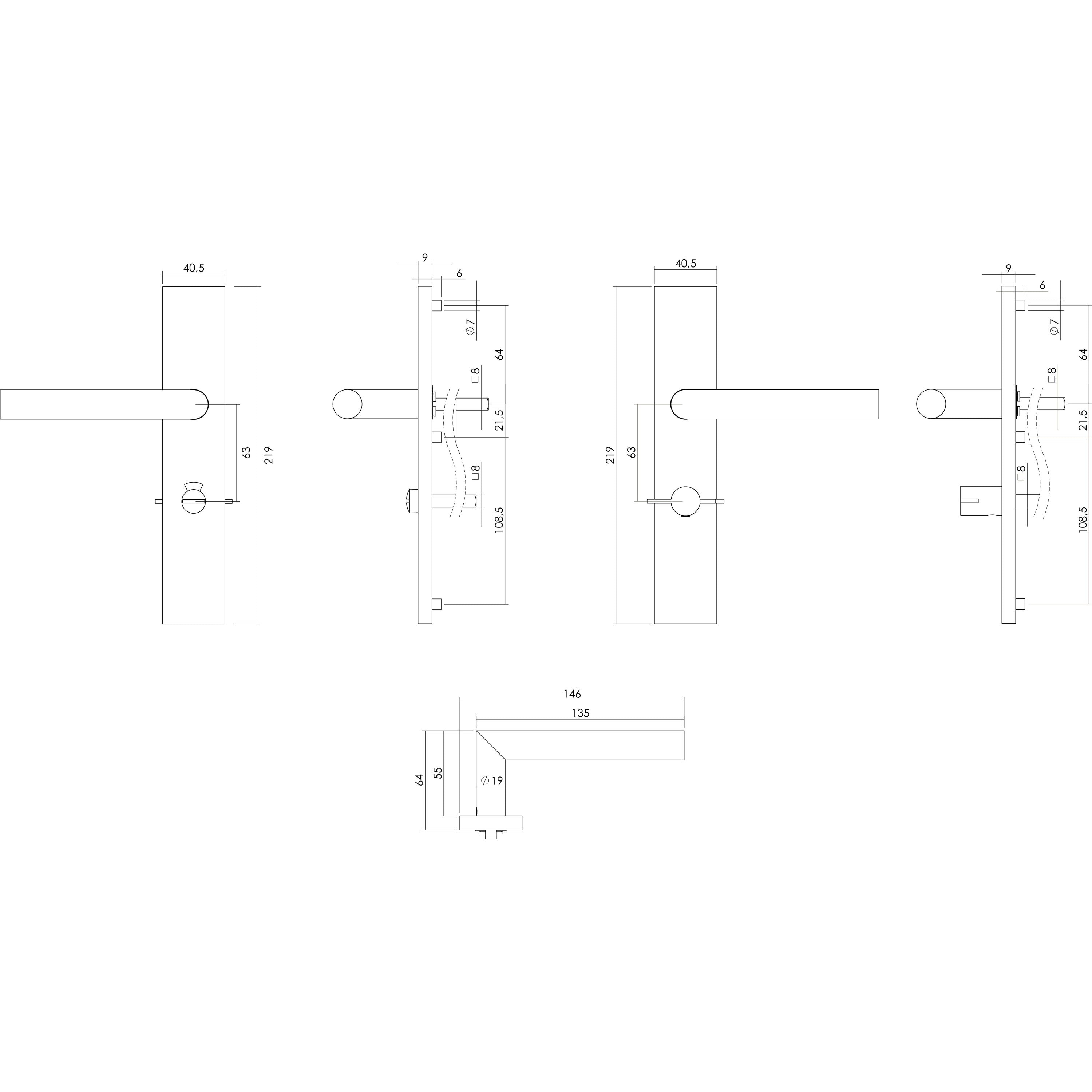 | Uitvoeringen | Toilet-/badkamersluiting 63 mm rechts |