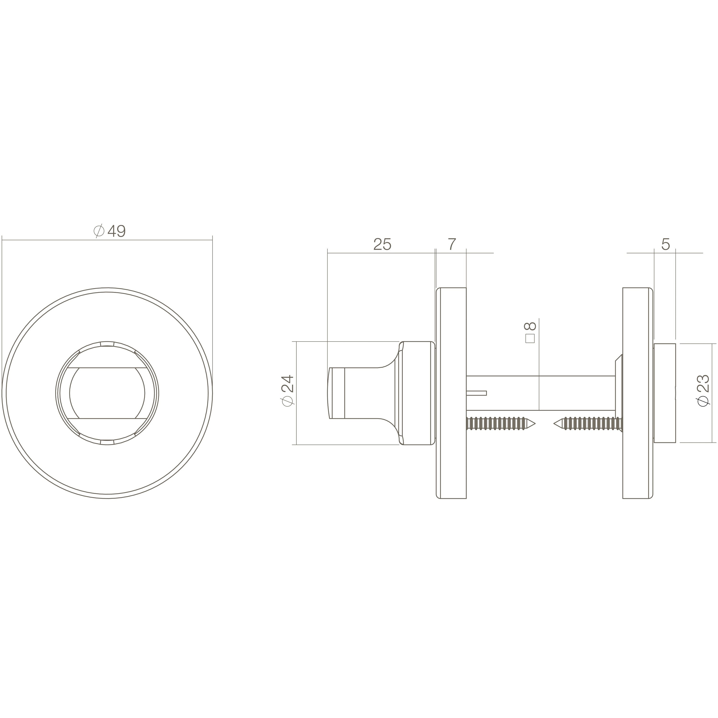 - De rozet heeft een diameter van 49 mm en heeft een verdekte montage